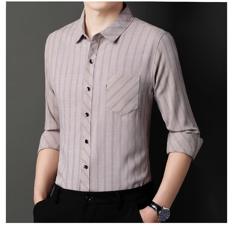 남성용 면화 및 린넨 비즈니스 캐주얼 긴팔 셔츠 기모 두꺼운 셔츠 남성 긴팔 가을과 겨울 새로운 줄무늬 셔츠