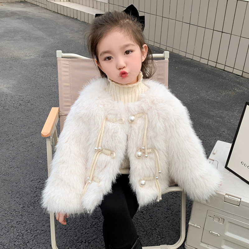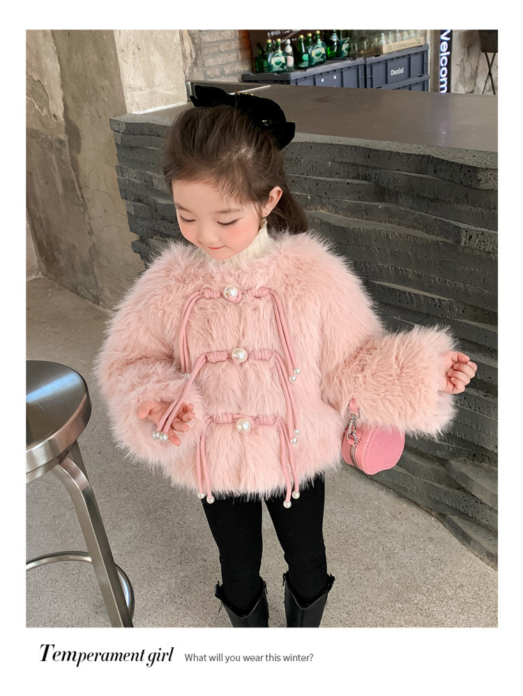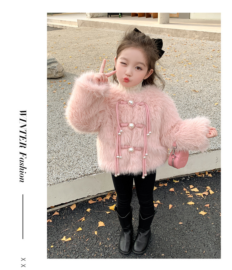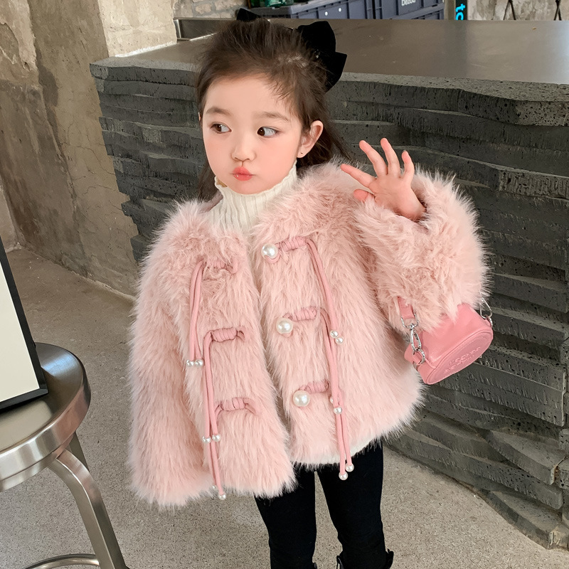 소녀 유행 인조 모피 코트 서양식 어린이 겨울 퀼트 코트 한국식 아기 두껍게 한 어린이 가을과 겨울 의류