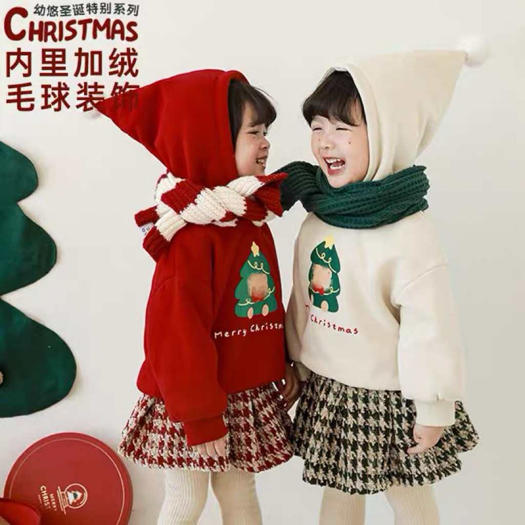 2023 여자 기모 스웨터 귀여운 마법사 모자 아기 겨울 크리스마스 새로운 따뜻한 풀오버 탑 패션스토어 가기