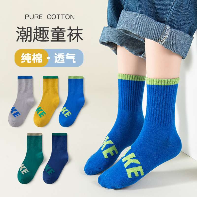 소년 양말 가을과 겨울 어린이 중형 및 대형 아동면 양말 봄과 가을 방취제 어린이 양말 문자 조수 양말 중반 종아리 길이 양말스토어 가기