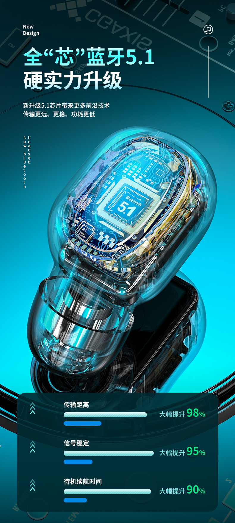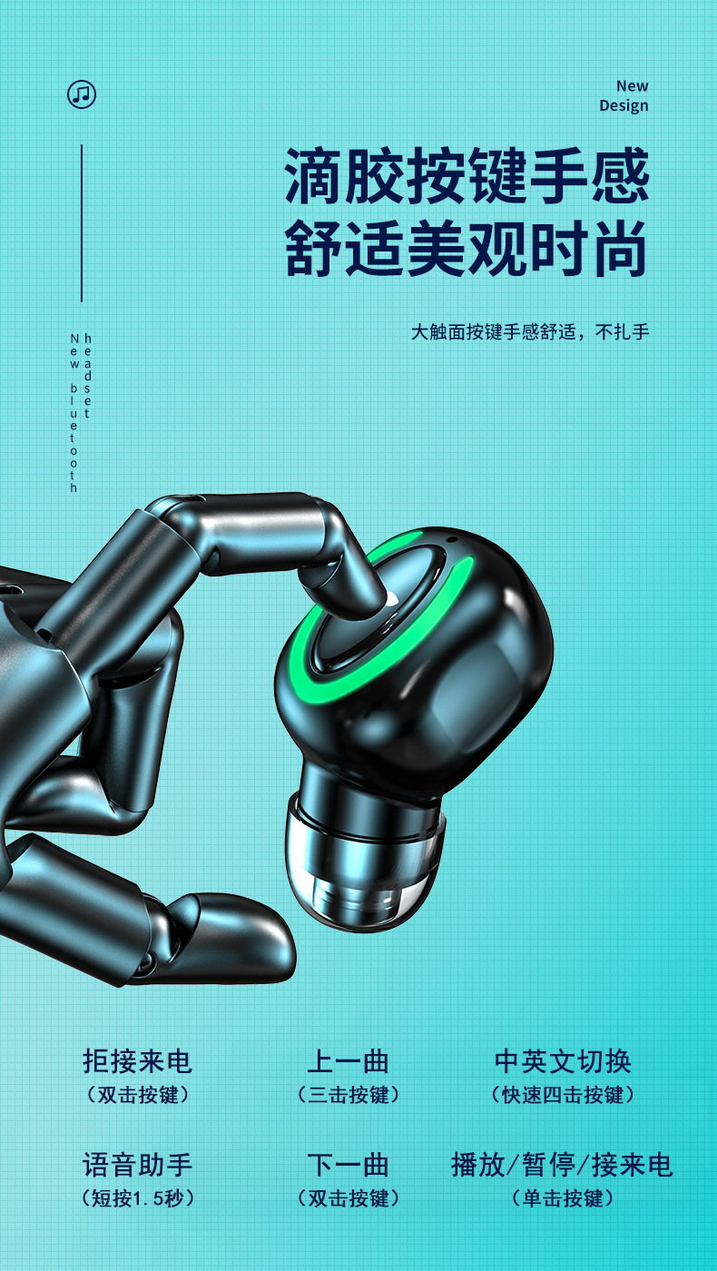 M9 새로운 미니 무선 블루투스 헤드셋 보이지 않는 귀에 매우 긴 지구력 작은 스포츠 수면 단일 귀