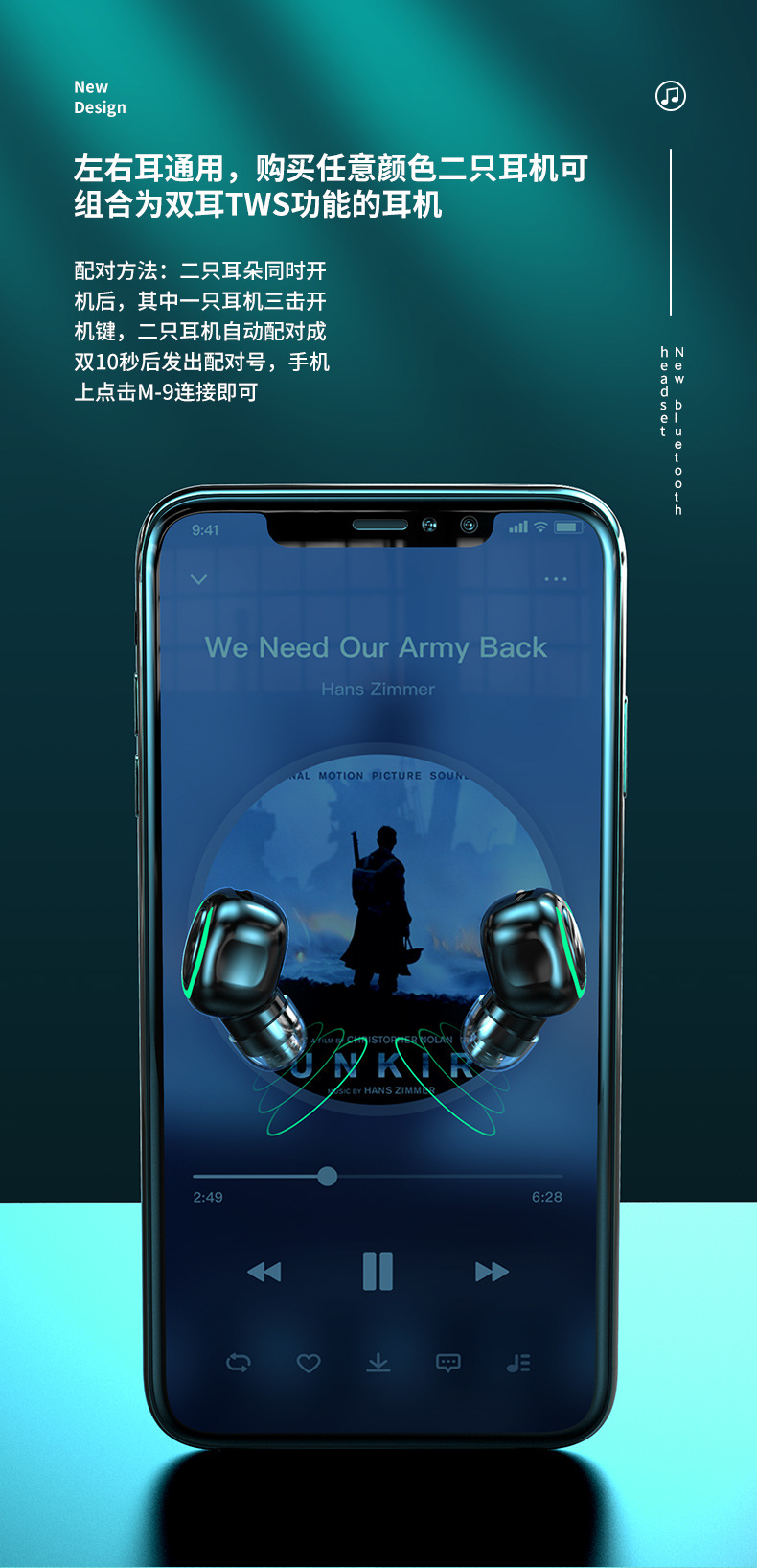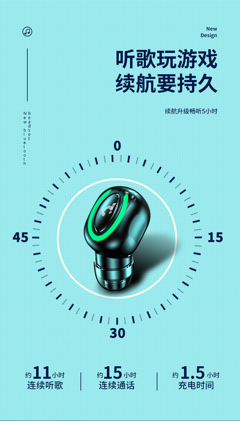 M9 새로운 미니 무선 블루투스 헤드셋 보이지 않는 귀에 매우 긴 지구력 작은 스포츠 수면 단일 귀스토어 가기