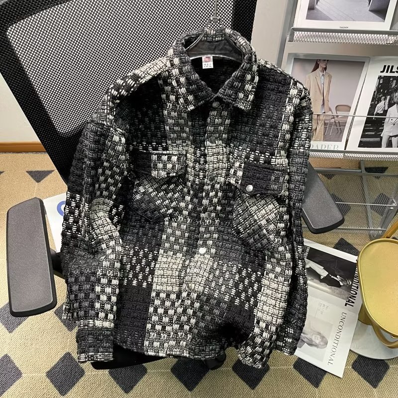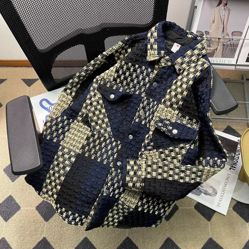2023 샤넬 스타일 코트 가을과 겨울 고급 한국식 트렌디 한 체크 무늬 짠 캐주얼 재킷스토어 가기