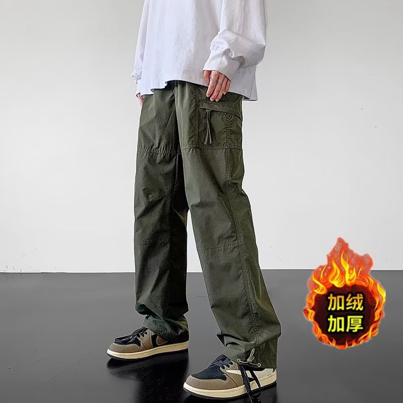 미국 기모 전투 바지 남성 가을과 겨울 등산 바지 스포츠 캐주얼 낙하산 바지 야외 느슨한 바지 두꺼운 바지