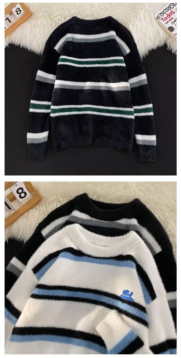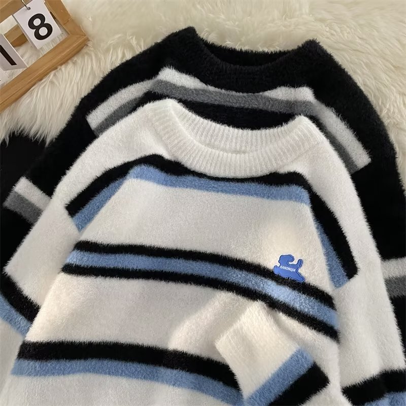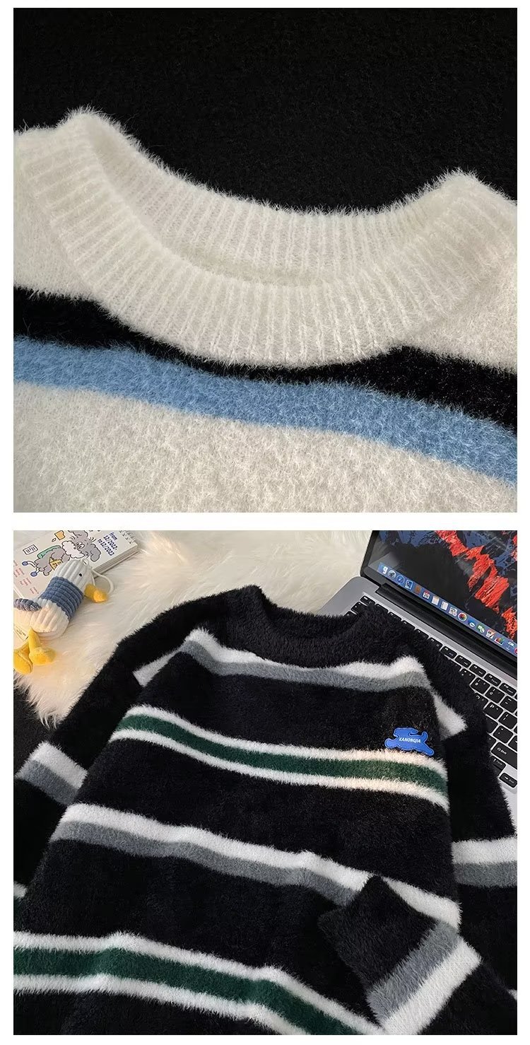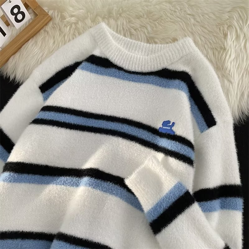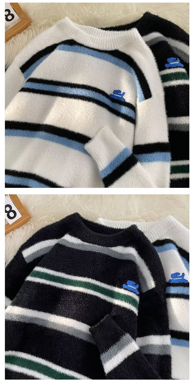 2023 가을과 겨울 남자 스웨터 느슨한 대조 컬러 스트라이프 크루 넥 트렌디 브랜드 풀오버 인 커플 패션 니트 셔츠스토어 가기