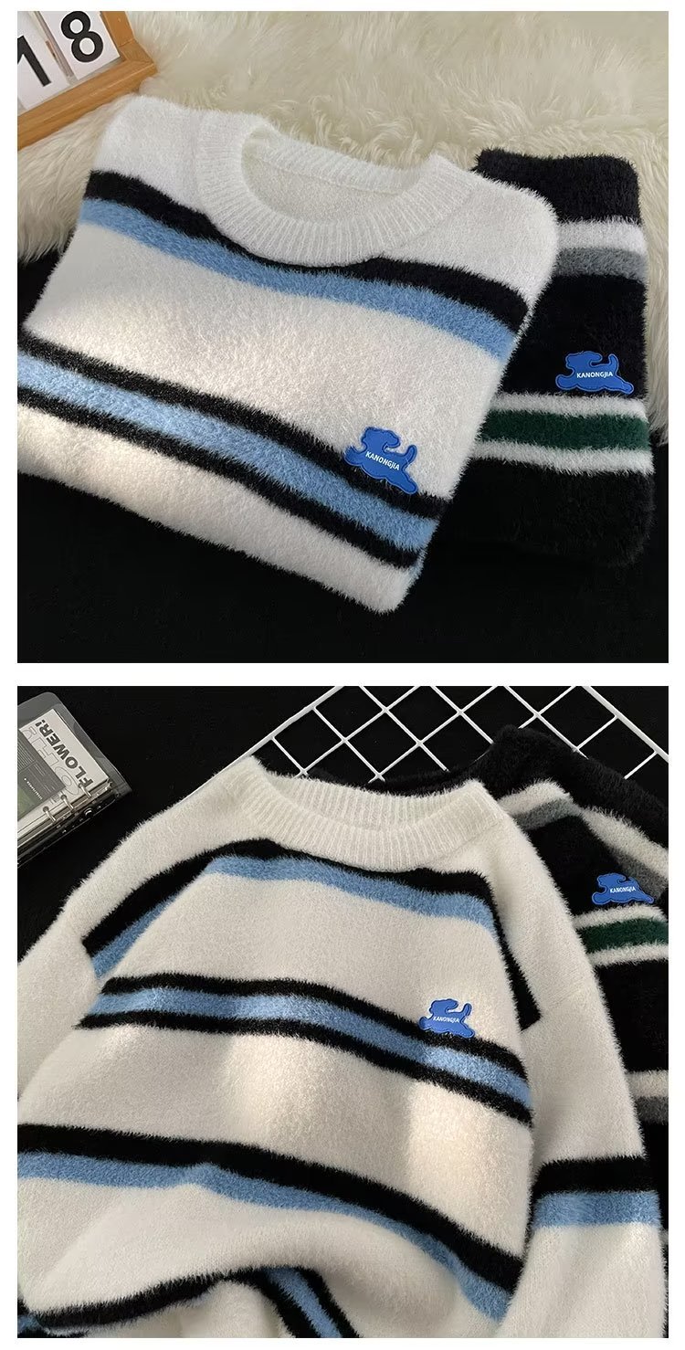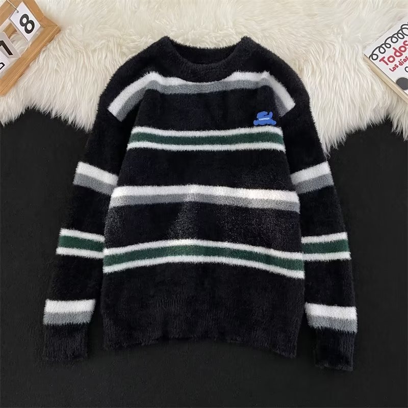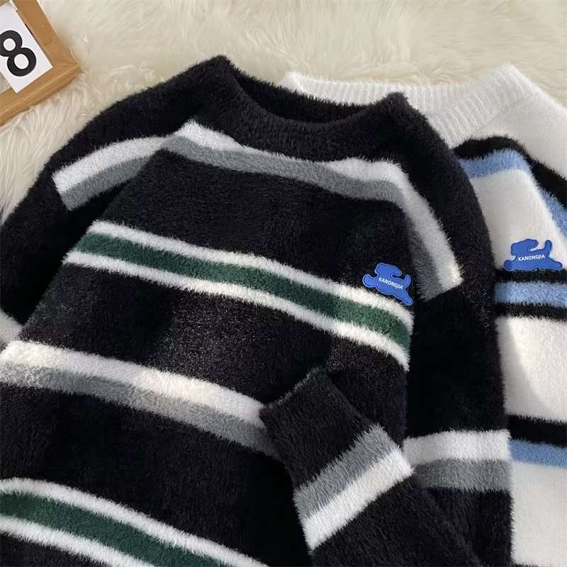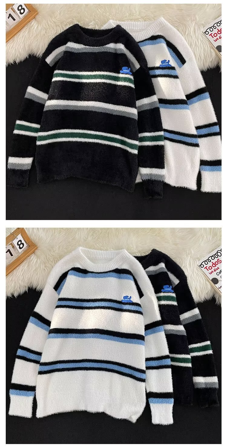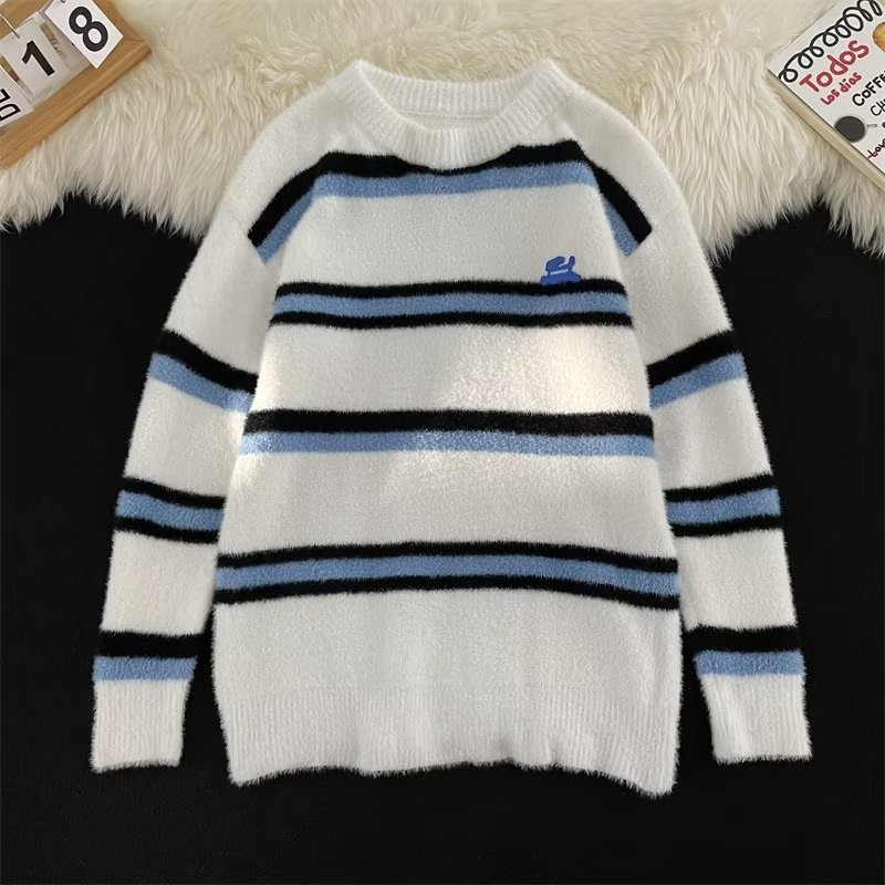 2023 가을과 겨울 남자 스웨터 느슨한 대조 컬러 스트라이프 크루 넥 트렌디 브랜드 풀오버 인 커플 패션 니트 셔츠스토어 가기