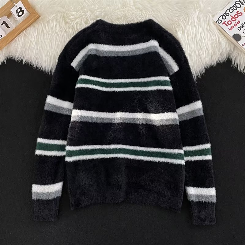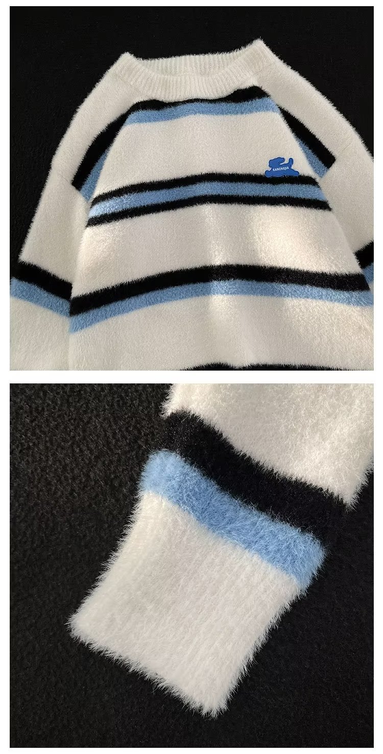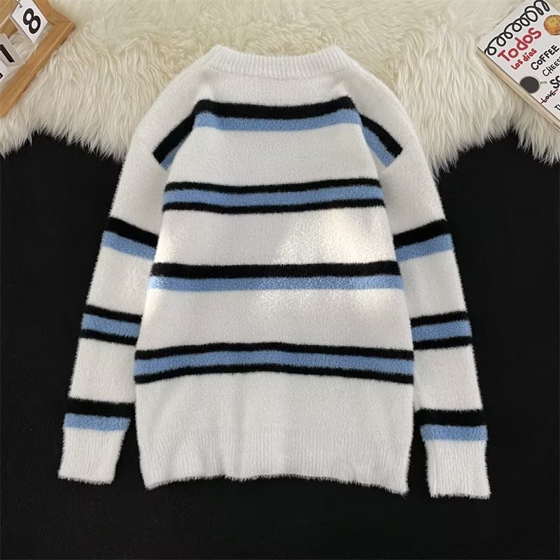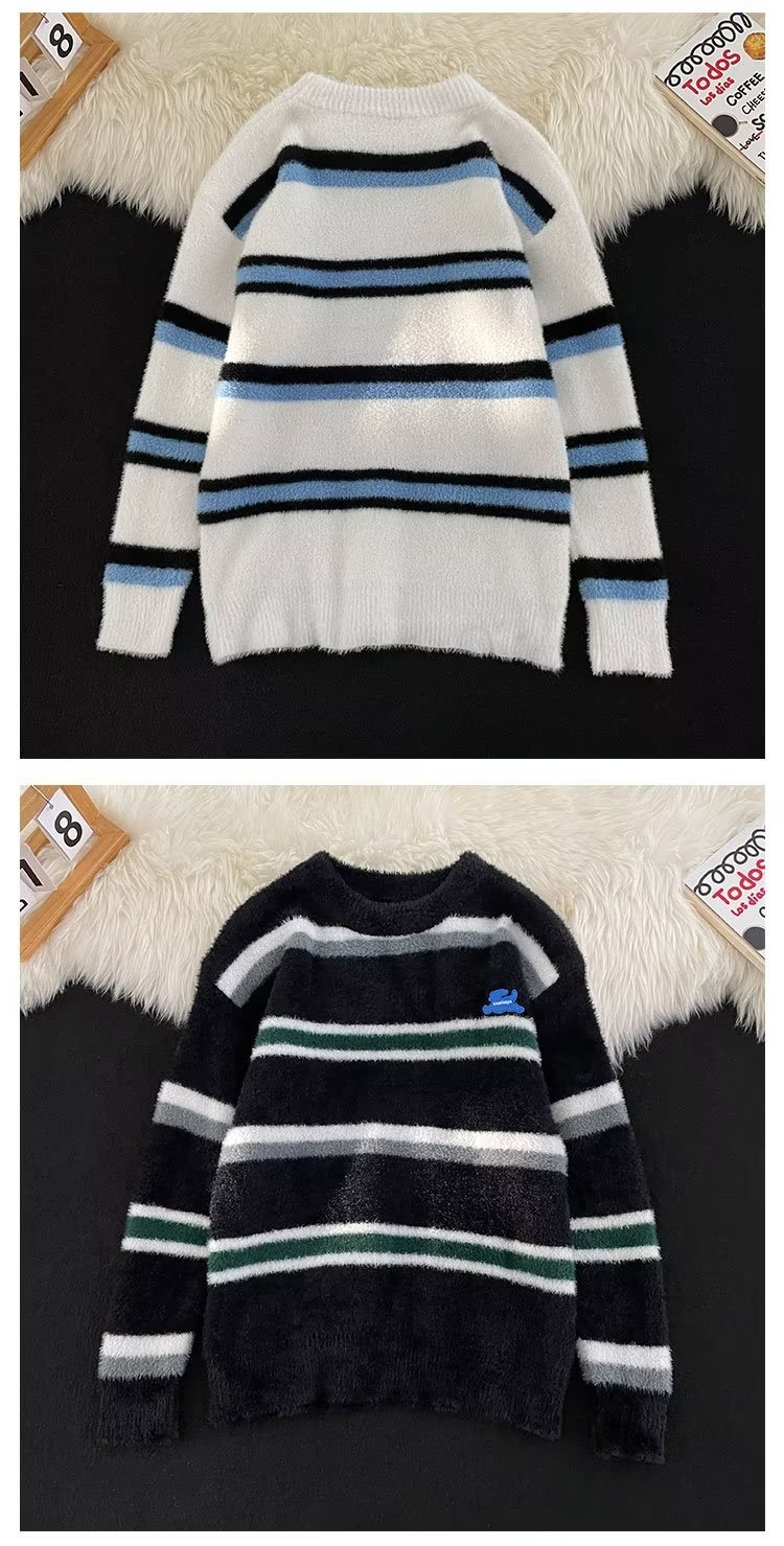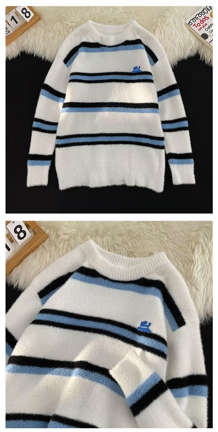 2023 가을과 겨울 남자 스웨터 느슨한 대조 컬러 스트라이프 크루 넥 트렌디 브랜드 풀오버 인 커플 패션 니트 셔츠스토어 가기