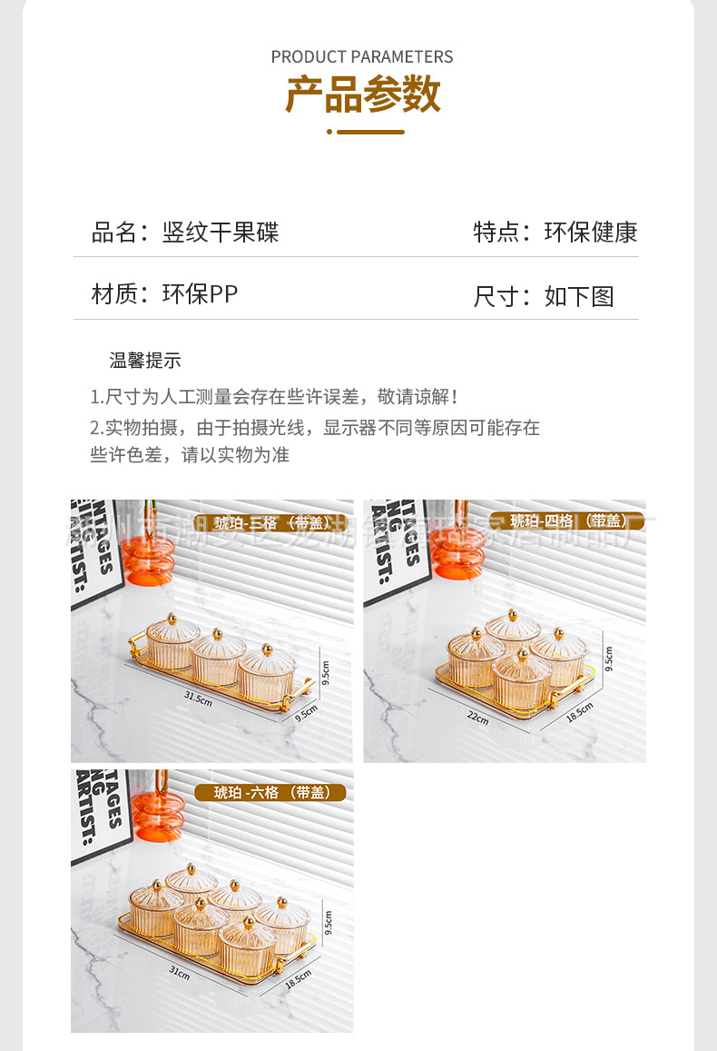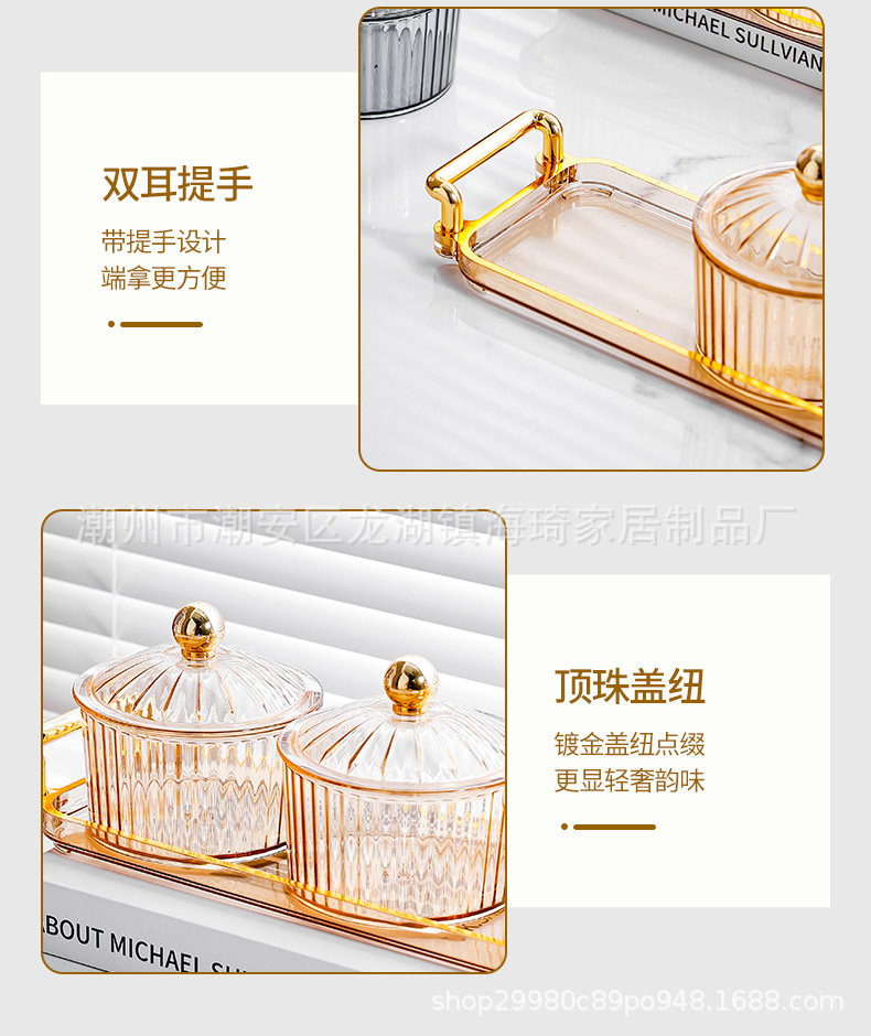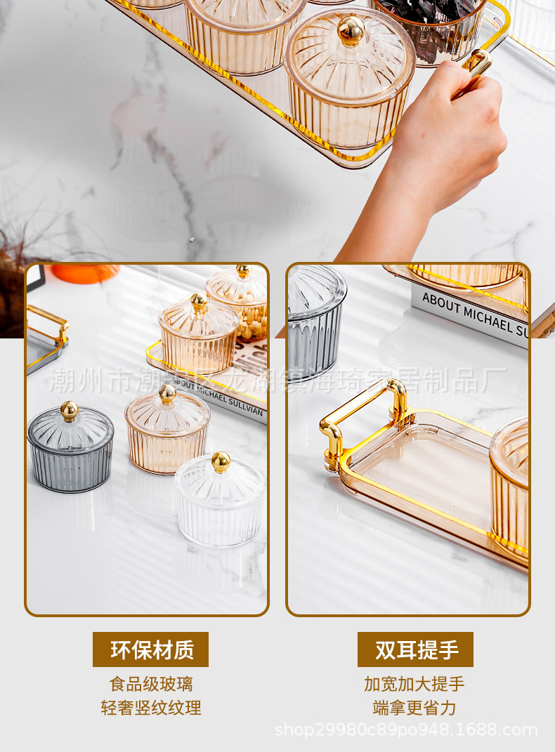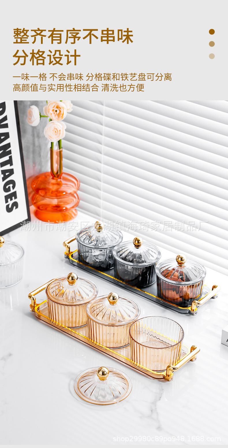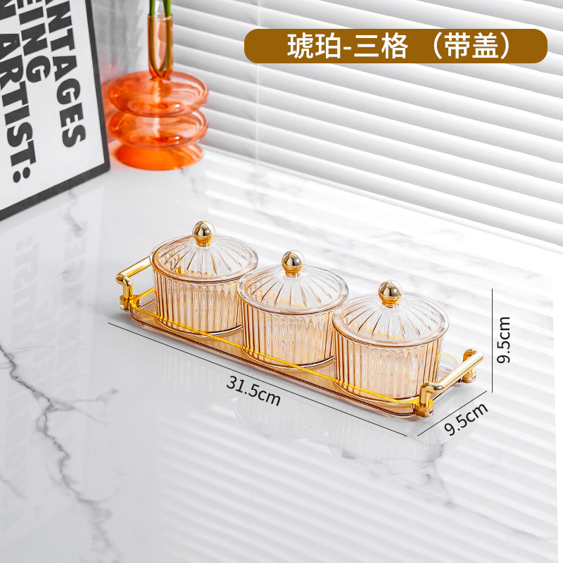 • PS 앰버 뚜껑이있는 3 라운드 접시 + 3 그리드 작은 귀 플레이트 골드 구슬