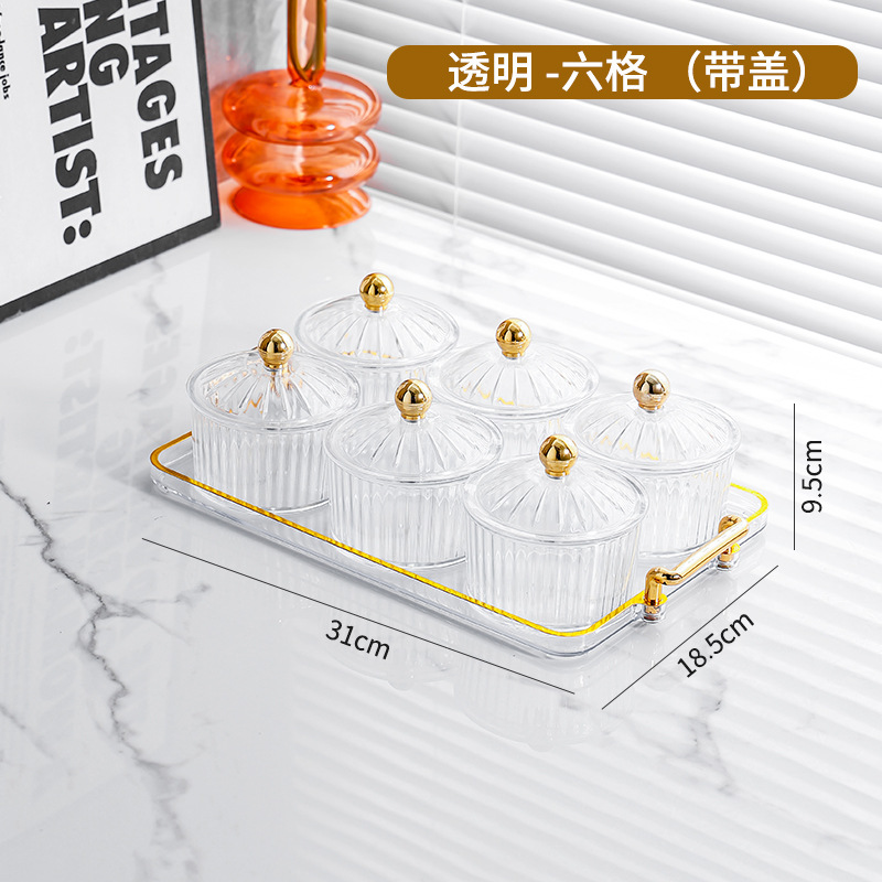 • PS 투명 색상 6 라운드 접시 뚜껑 + 6 그리드 작은 귀 플레이트 골드 구슬