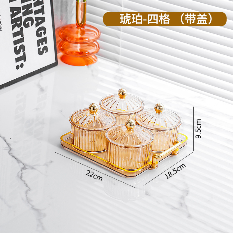 • PS 앰버 뚜껑이있는 4 라운드 접시 + 4 그리드 작은 귀 플레이트 골드 구슬
