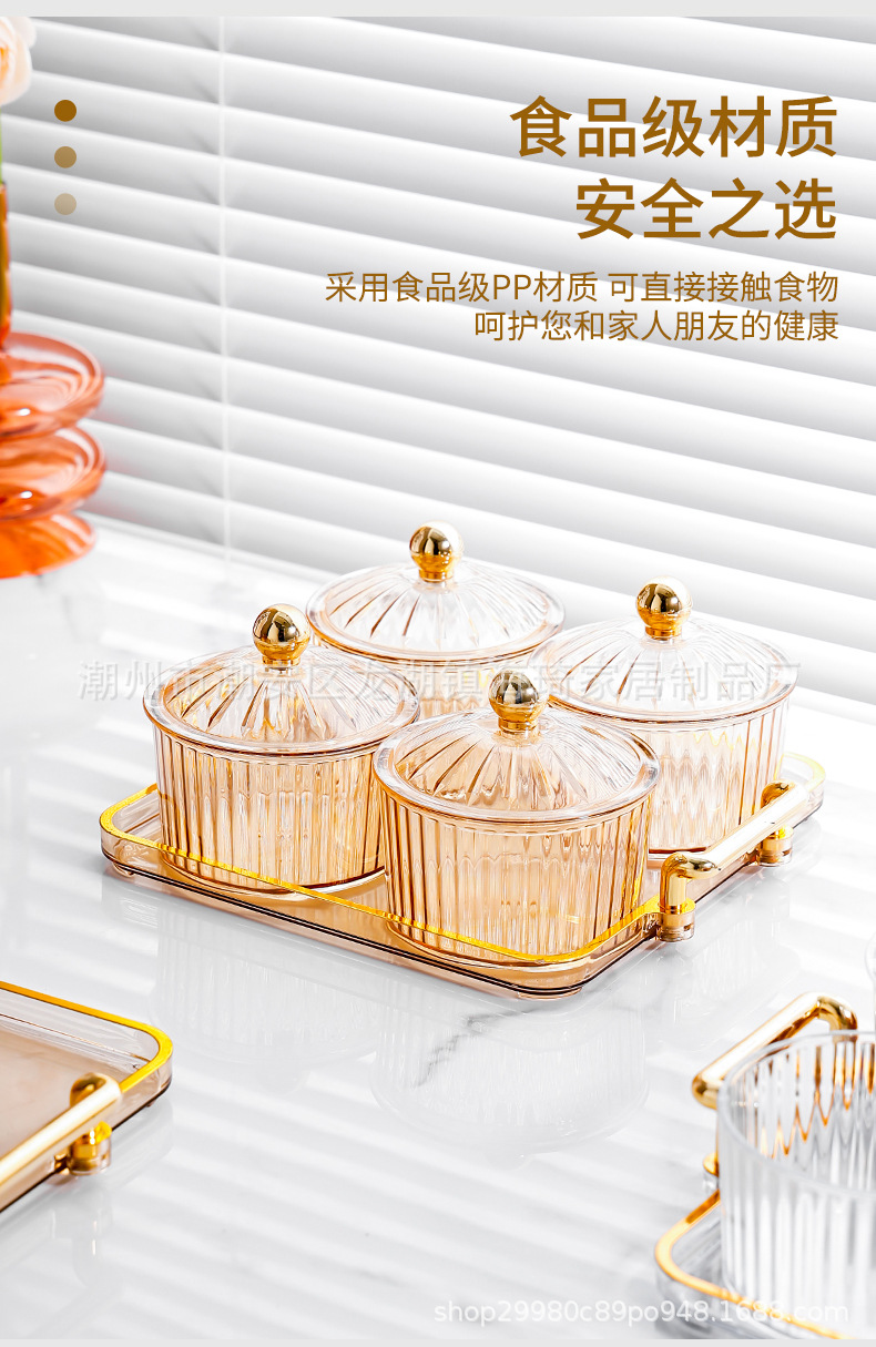 • PS 투명 색상 뚜껑이있는 4 라운드 접시 + 4 그리드 작은 이어 플레이트 골드