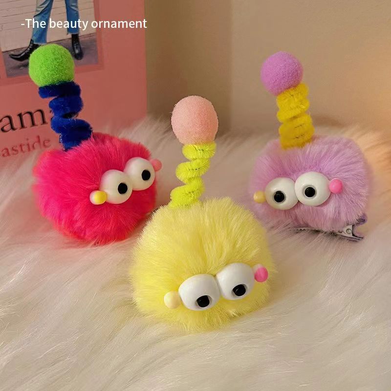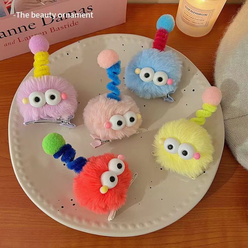 귀여운 머리 공 머리핀 큰 눈 못생긴 귀여운 인형 석탄 공 머리핀 소녀의 만화 재미 있는 성격 덕빌 머리 머리 액세서리스토어 가기