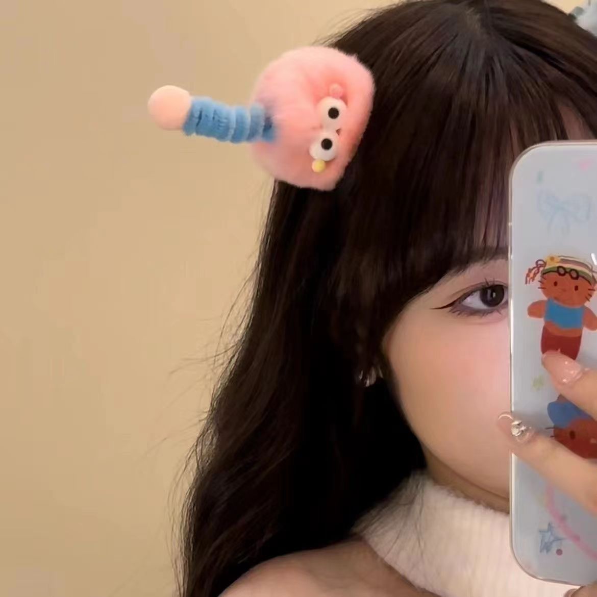귀여운 머리 공 머리핀 큰 눈 못생긴 귀여운 인형 석탄 공 머리핀 소녀의 만화 재미 있는 성격 덕빌 머리 머리 액세서리