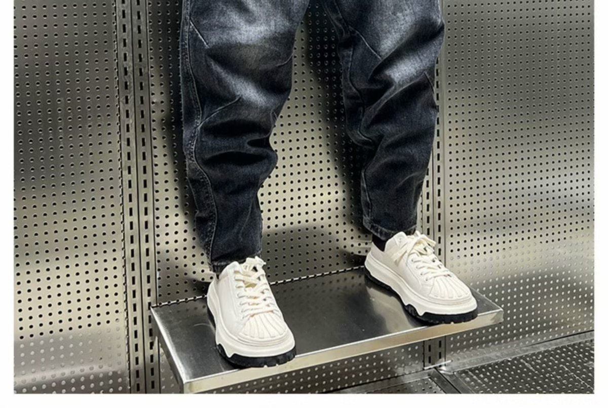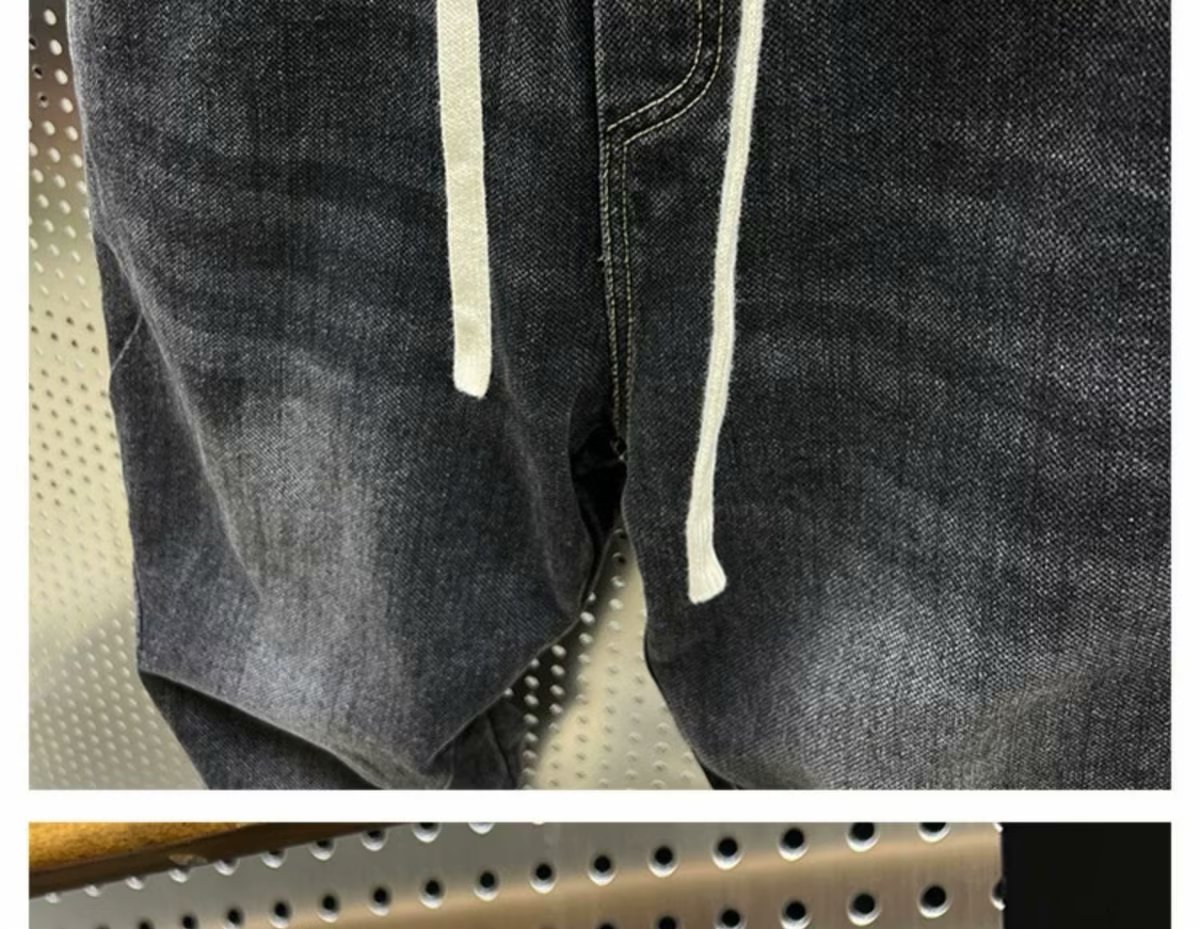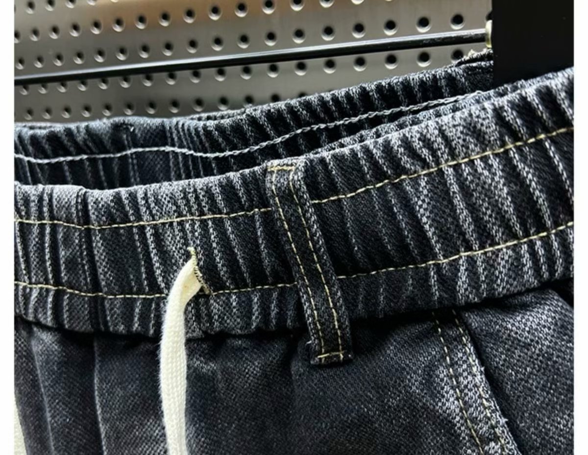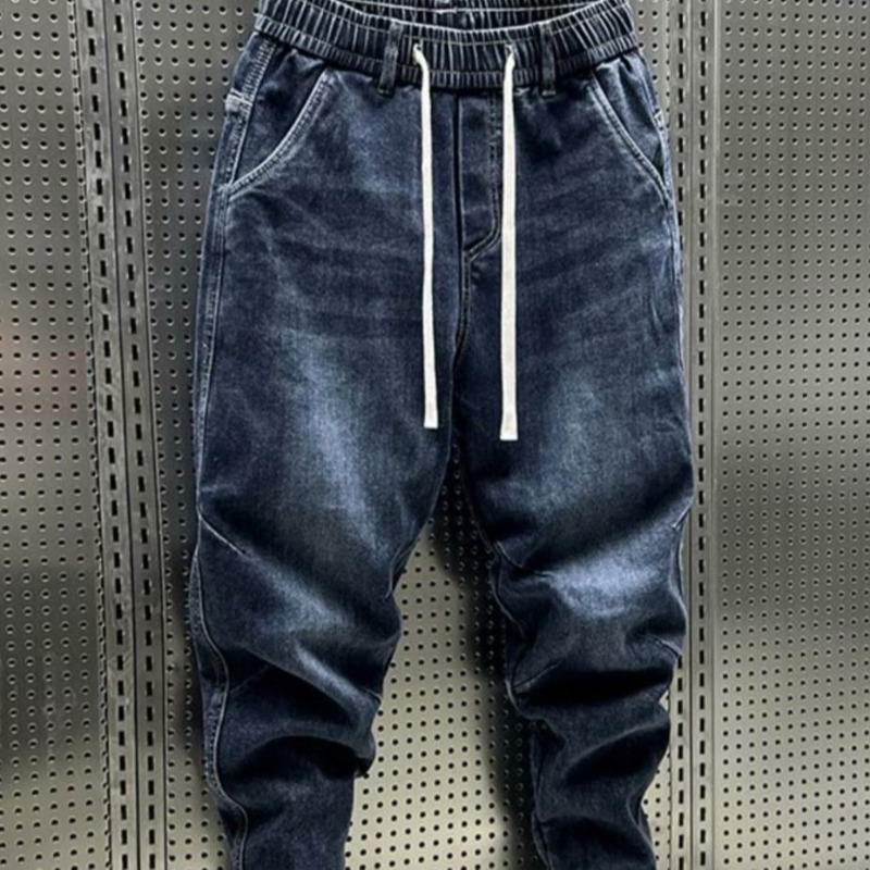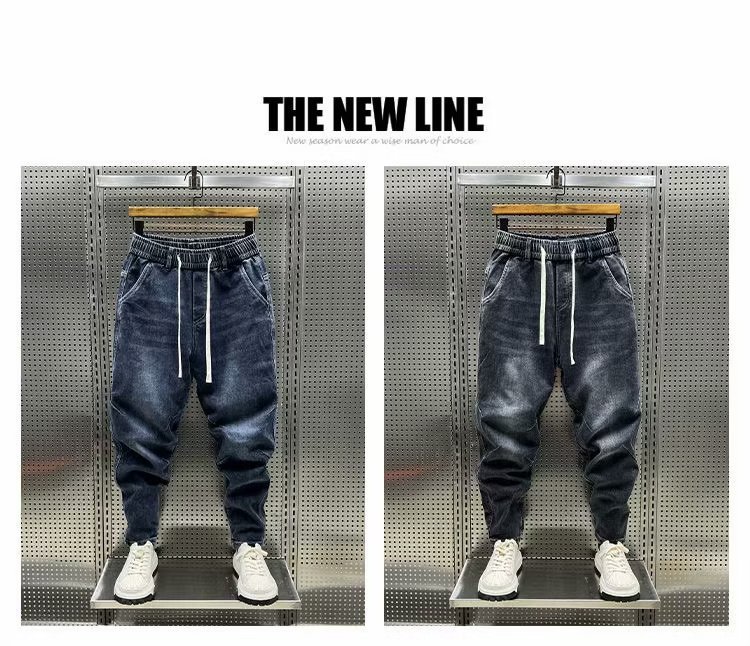 데님 바지 남자 2024 년 봄 새로운 탄성 허리 스트레치 레깅스 트렌디 한 느슨한 할렌 바지 캐주얼 바지스토어 가기