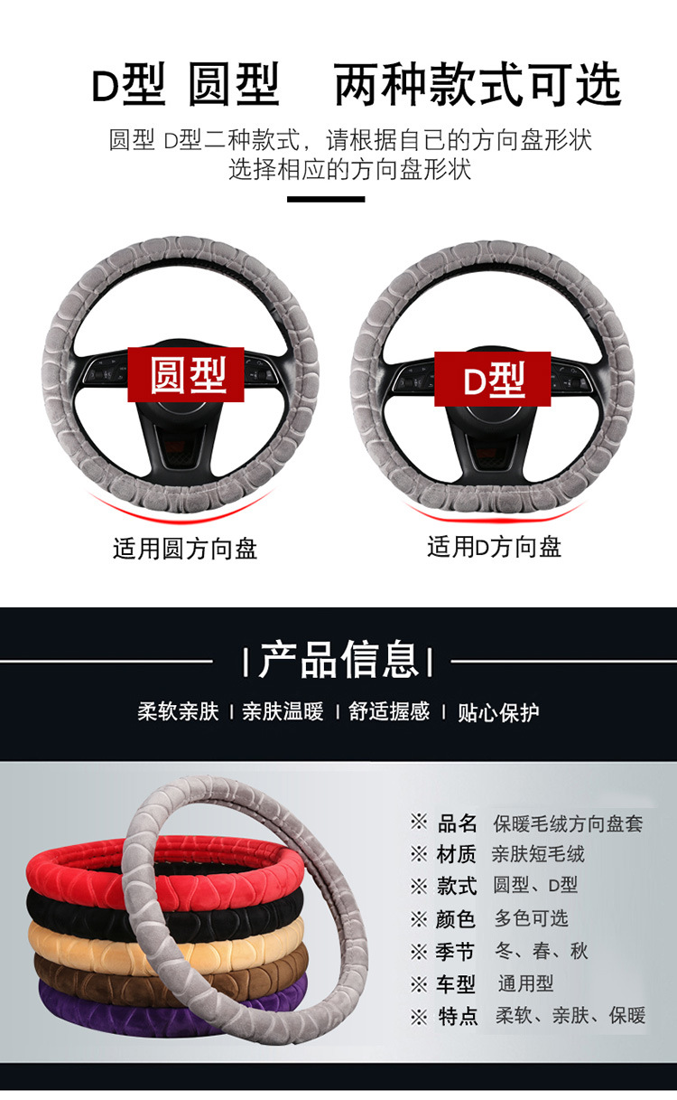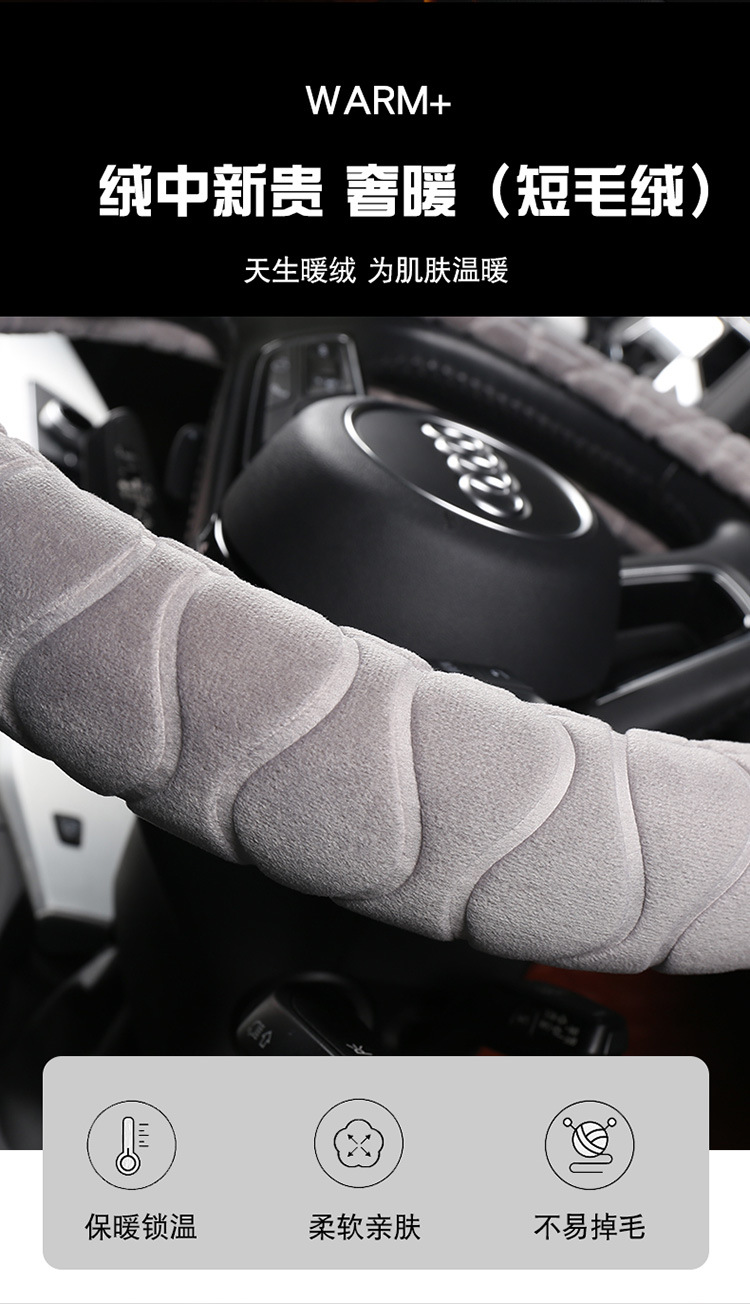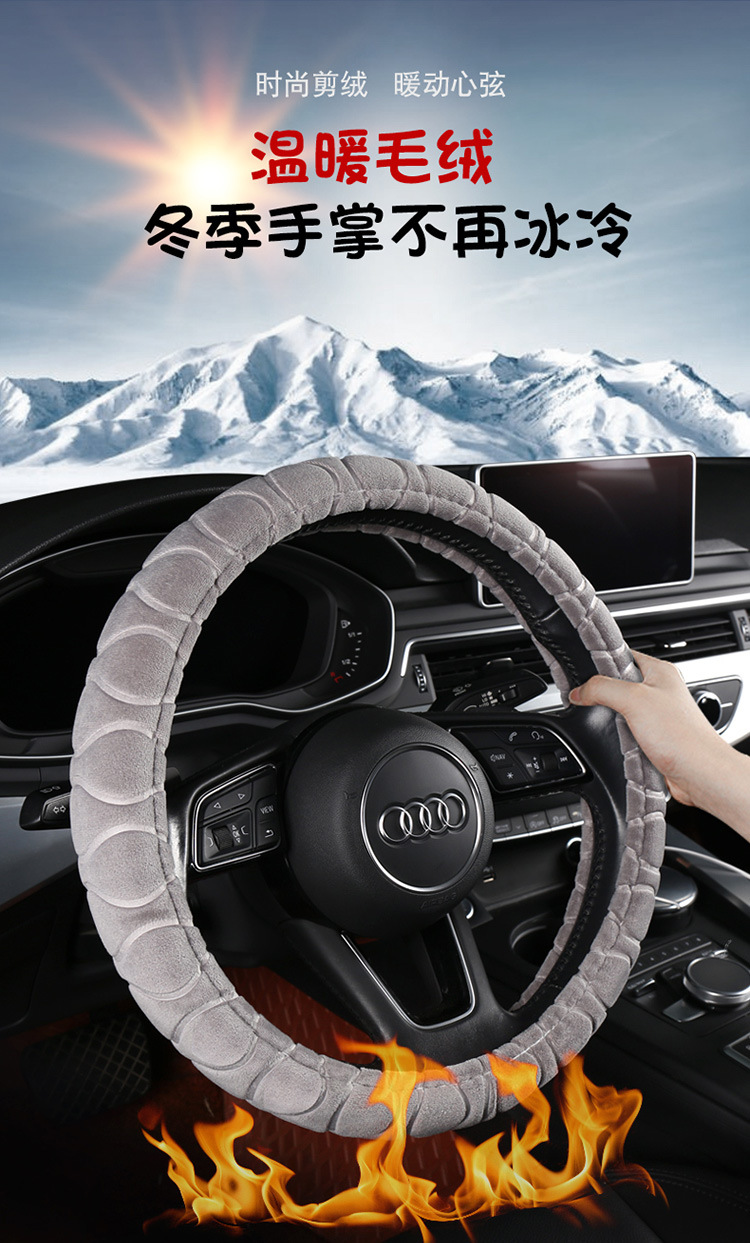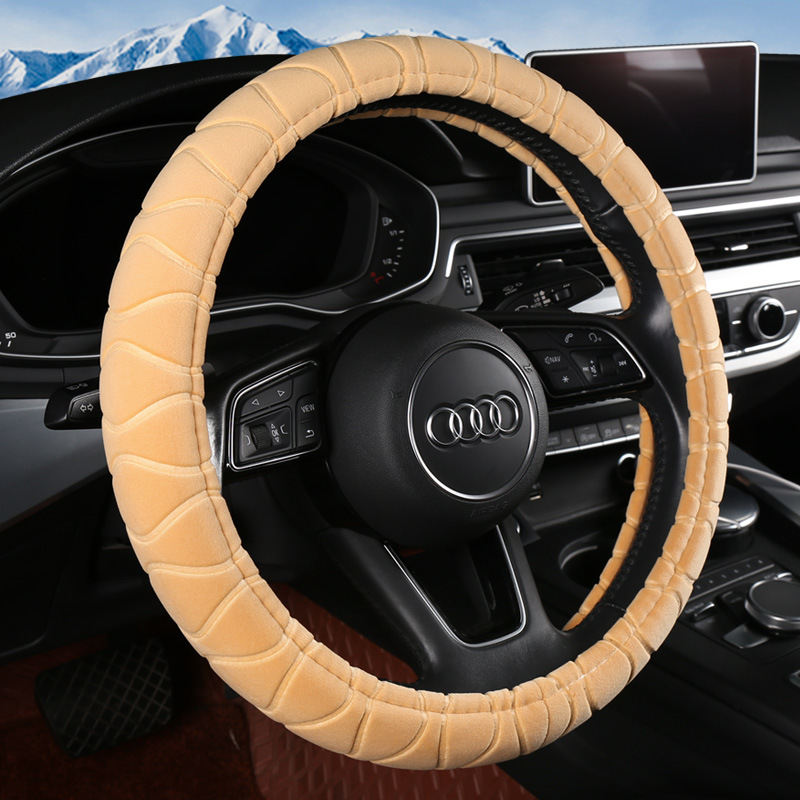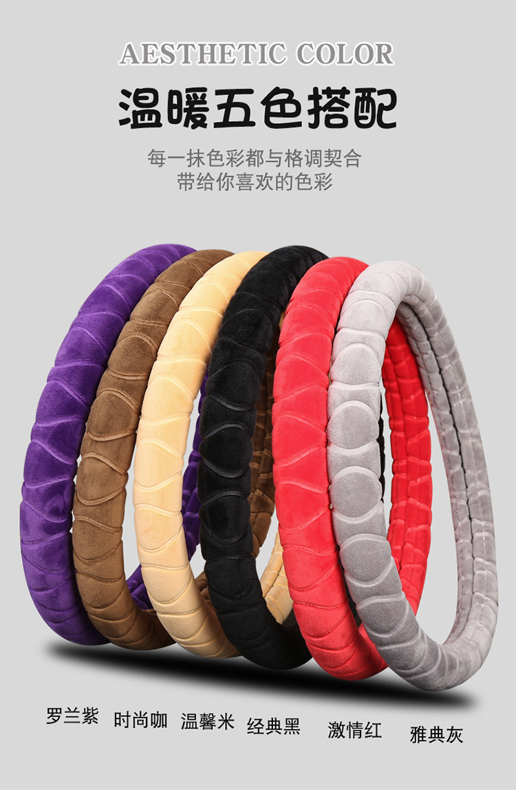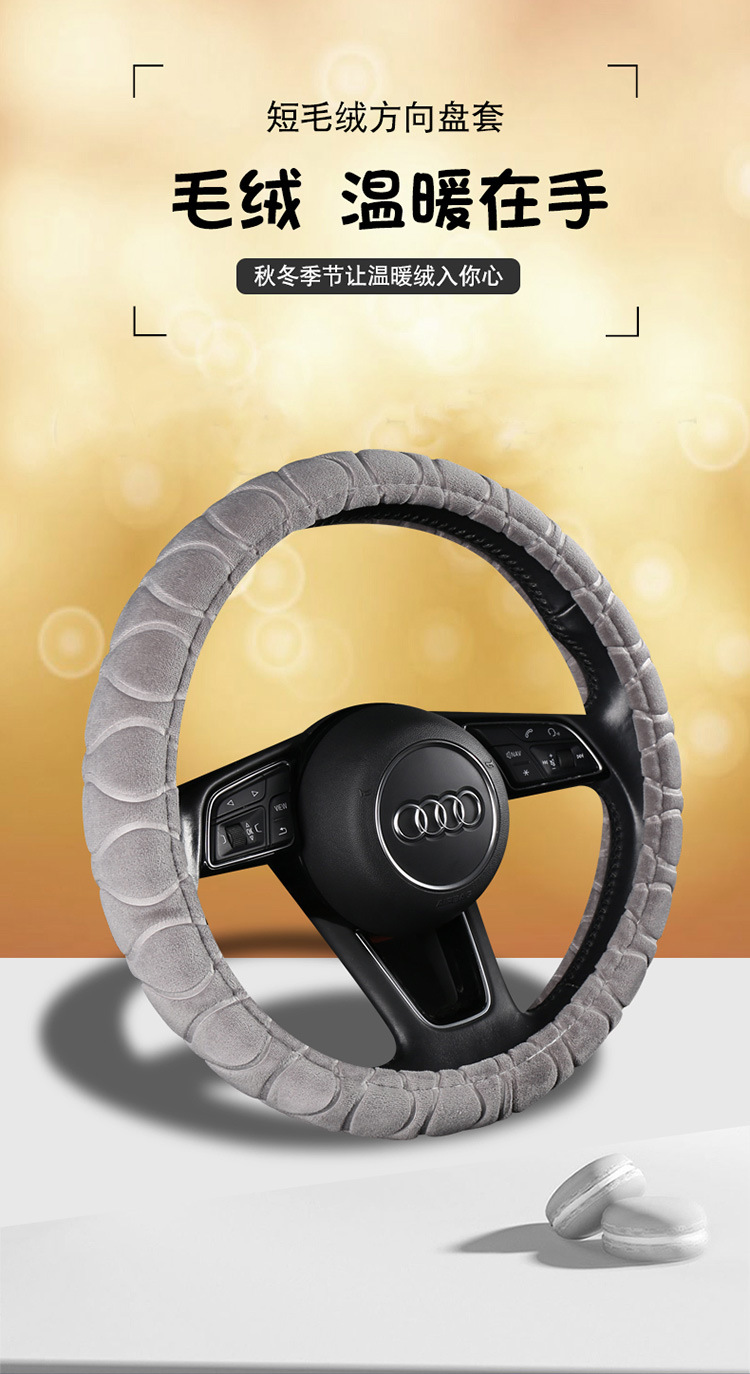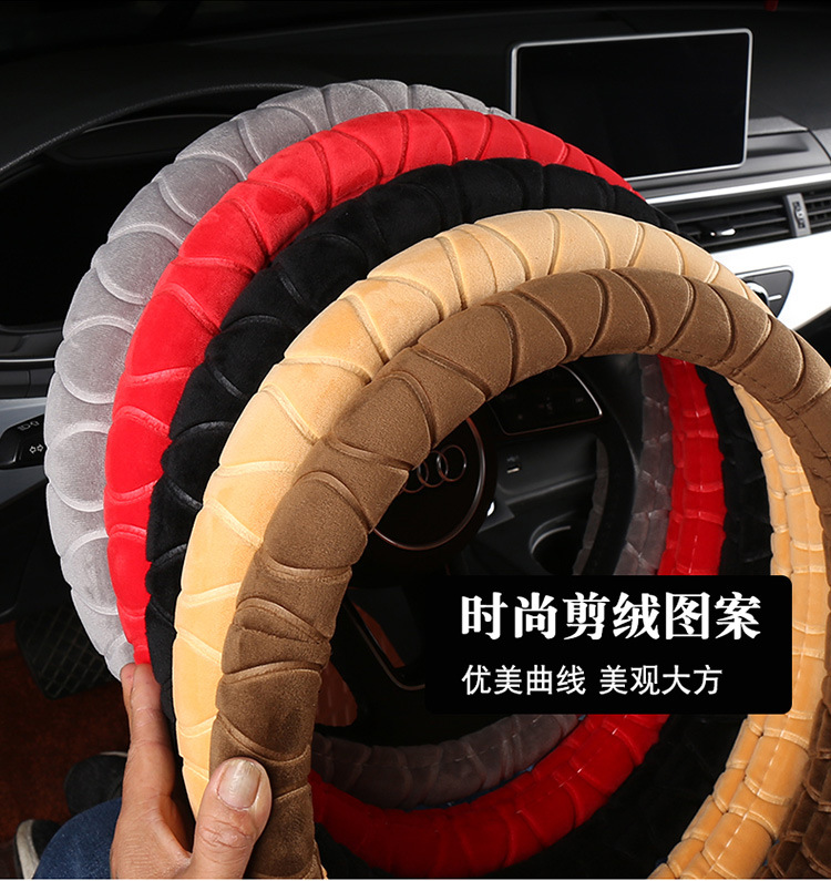 가을 겨울용 스티어링 휠 커버, 짧은 플러시 자동차 핸들 커버, 미끄럼 방지, 겨울철 보온, 무취, 도매용 자동차용 두꺼운 보온 커버