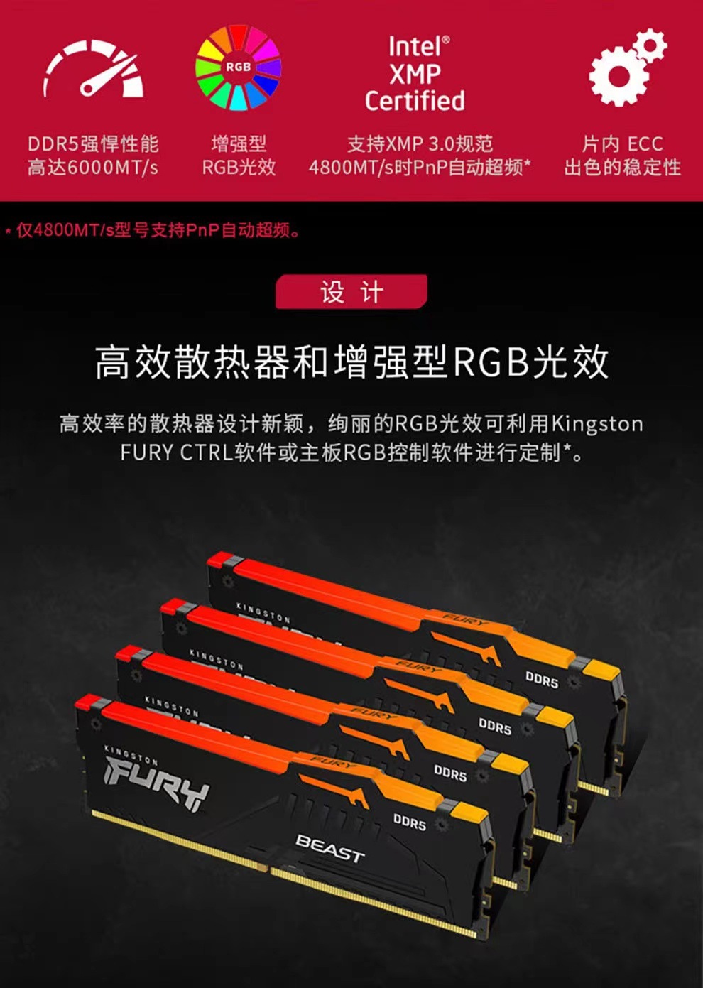Kingston FURY Beast Beast DDR5 RGB 16G 6000 데스크탑 메모리 해커 신들을 위해