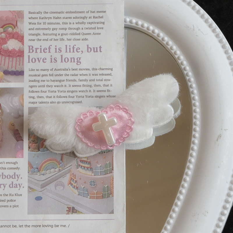 화이트 엔젤 러브 크로스 날개 헤어핀 사이드 클립 스파이스 소녀 하위 문화 디자인 하라주쿠 스타일 귀여운 헤드웨어 여성스토어 가기
