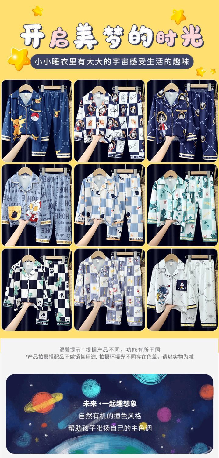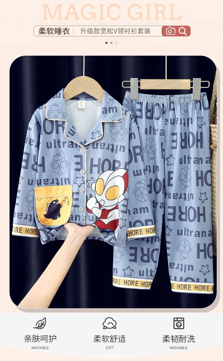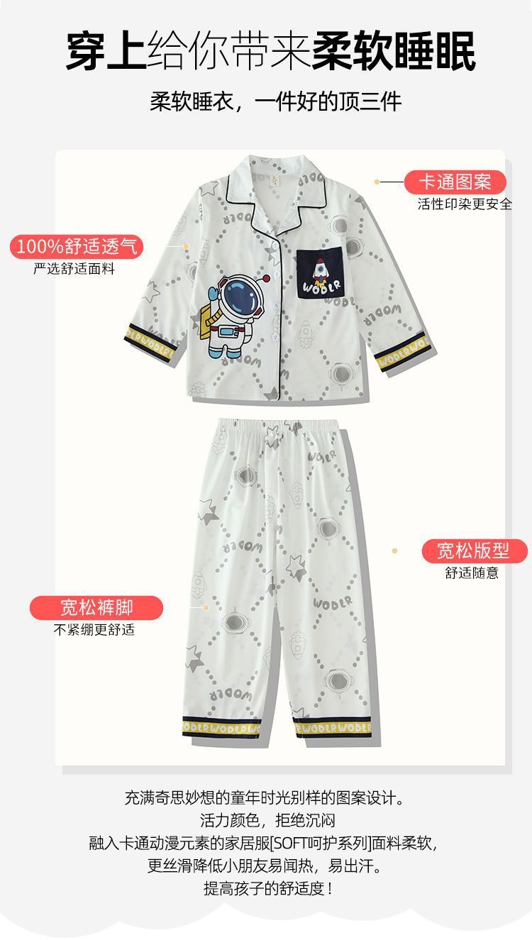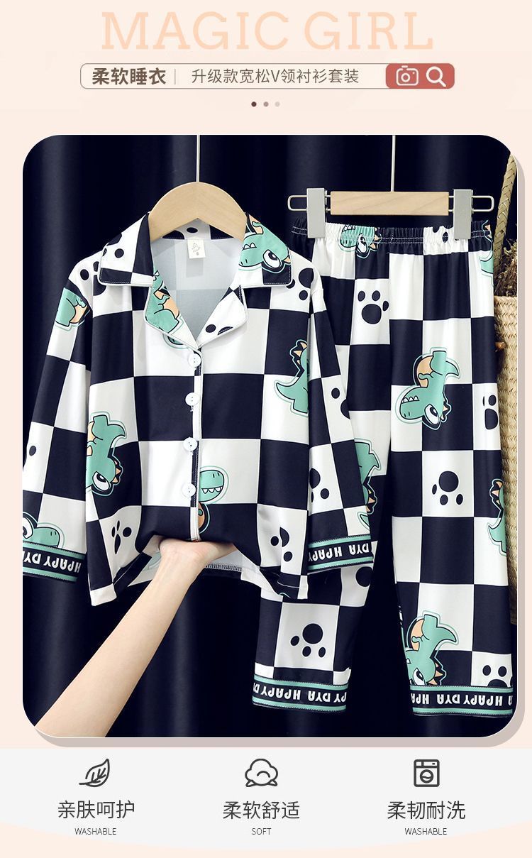 어린이 잠옷 봄과 가을 옷깃 긴 소매 얇은 만화 세트 중간 및 큰 아이들 소년 아이들 귀여운 서양식 홈웨어스토어 가기