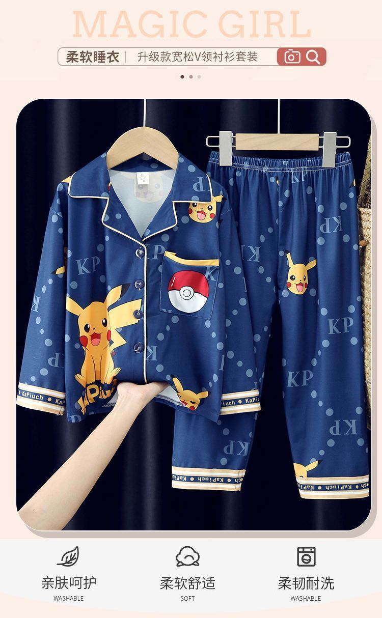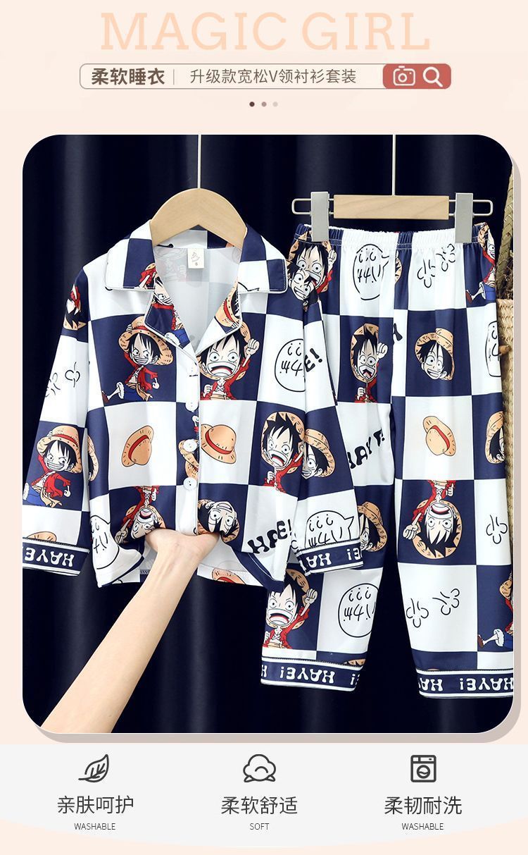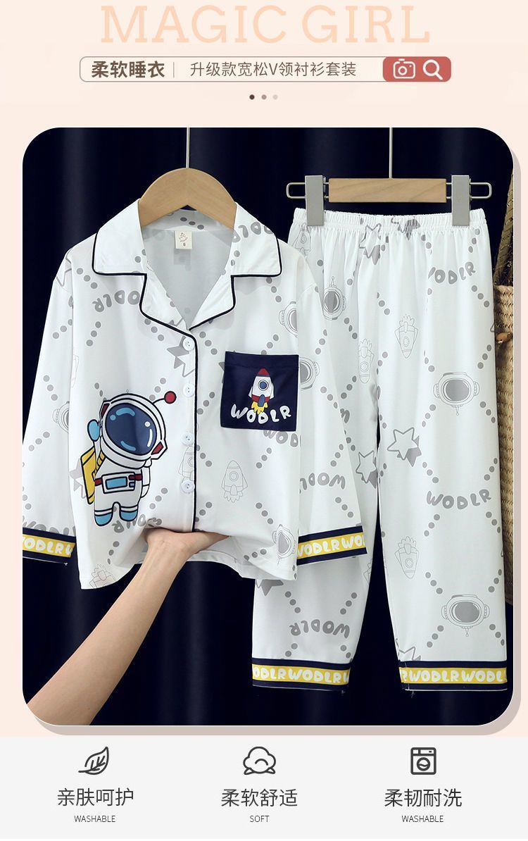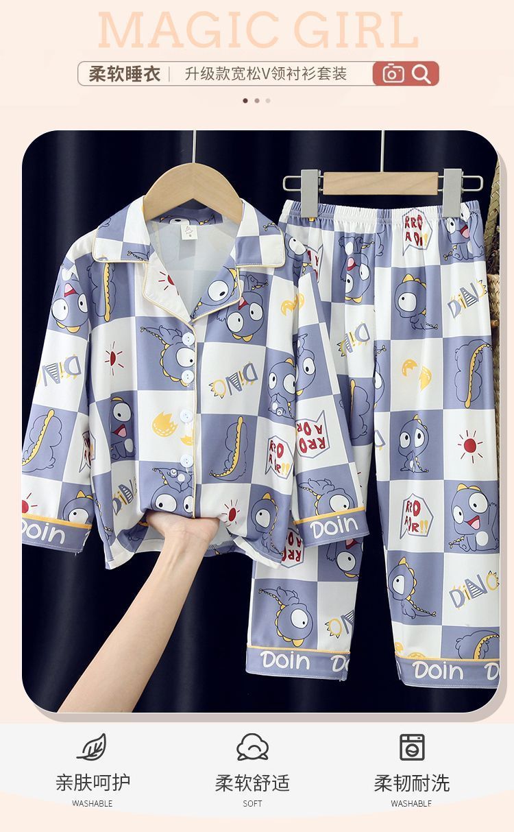 어린이 잠옷 봄과 가을 옷깃 긴 소매 얇은 만화 세트 중간 및 큰 아이들 소년 아이들 귀여운 서양식 홈웨어스토어 가기