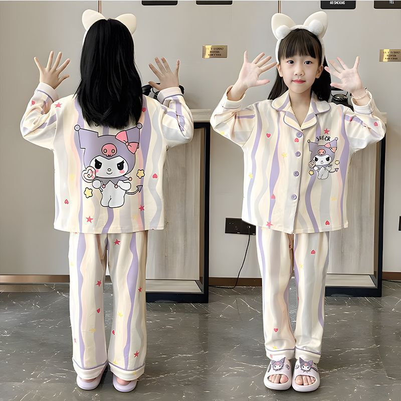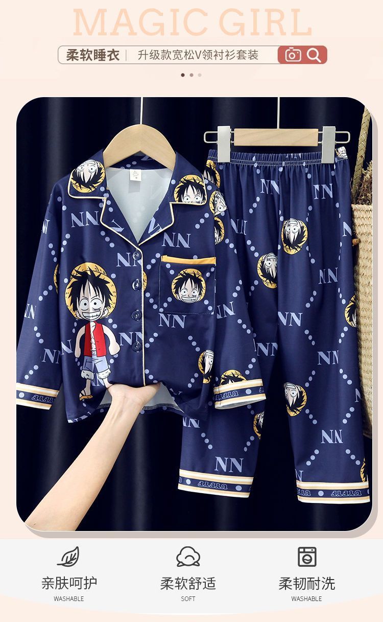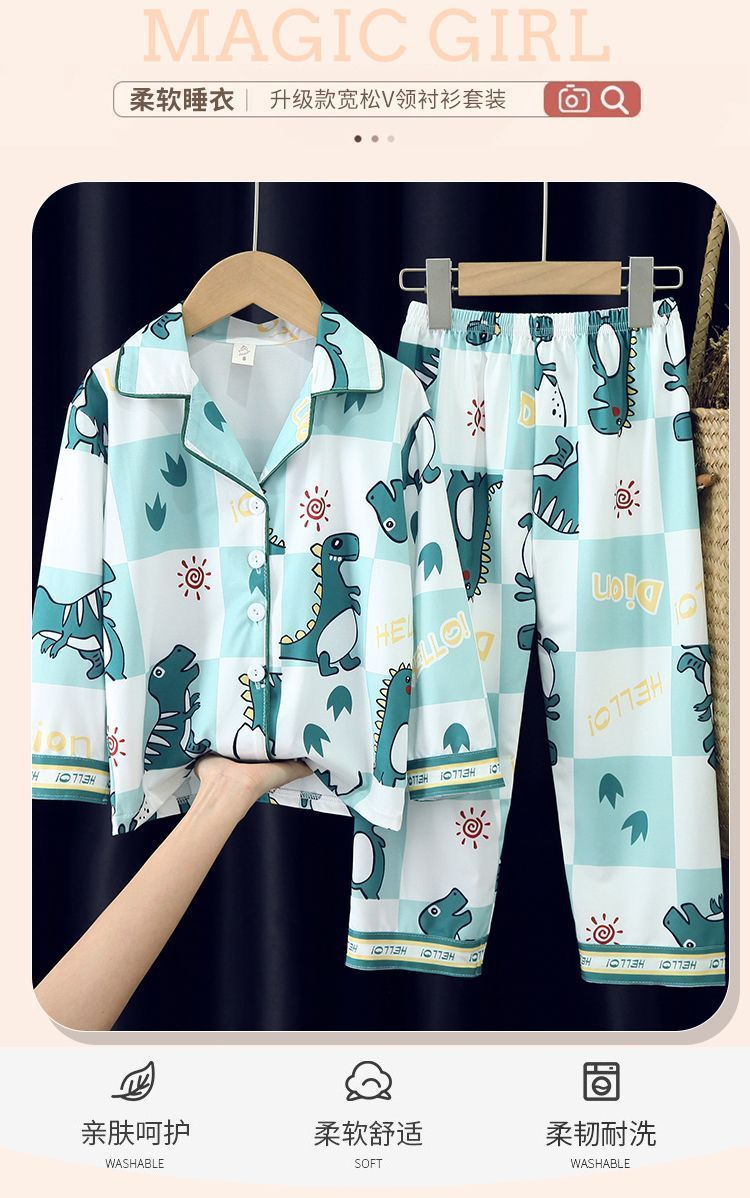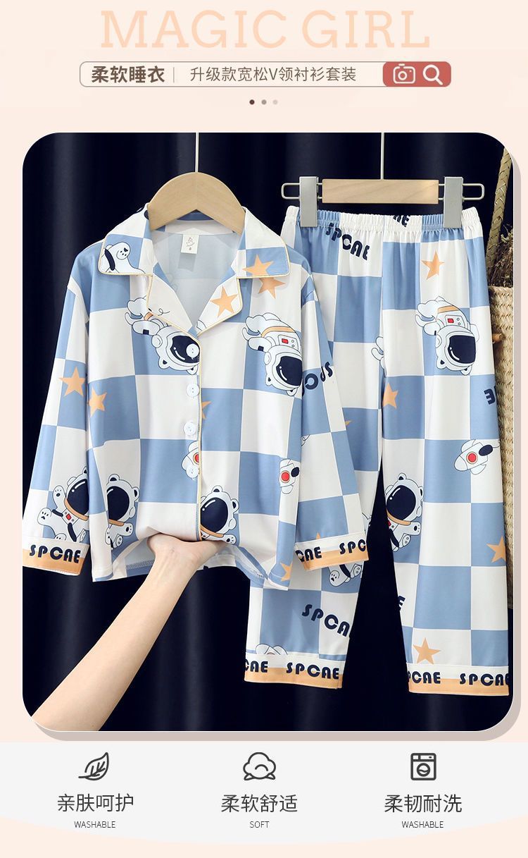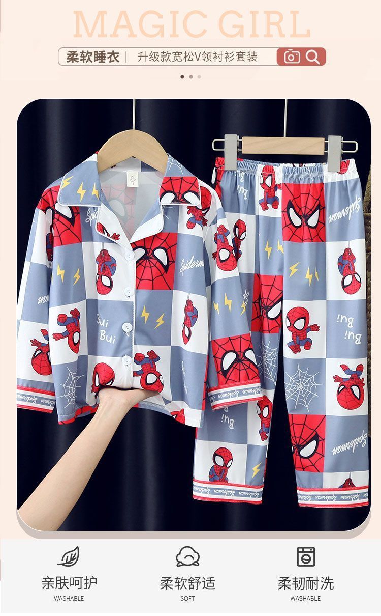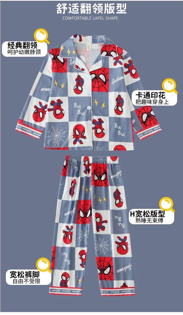 어린이 잠옷 봄과 가을 옷깃 긴 소매 얇은 만화 세트 중간 및 큰 아이들 소년 아이들 귀여운 서양식 홈웨어