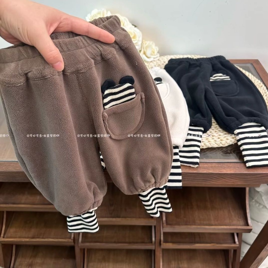 어린이 바지 기모 가을과 겨울 한국 스타일의 따뜻한 바지 소년 소녀를위한 아기 두꺼운 잘 생긴 아기 바지스토어 가기
