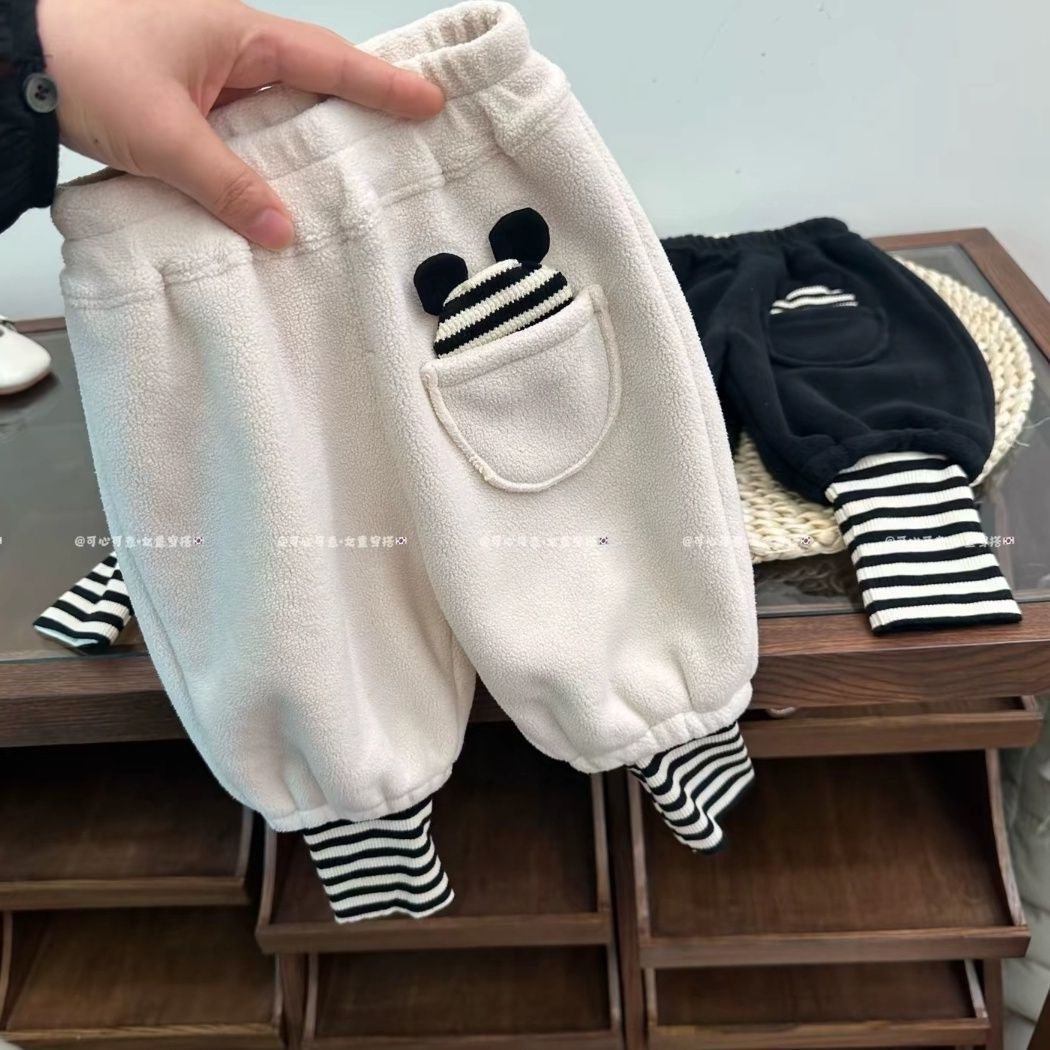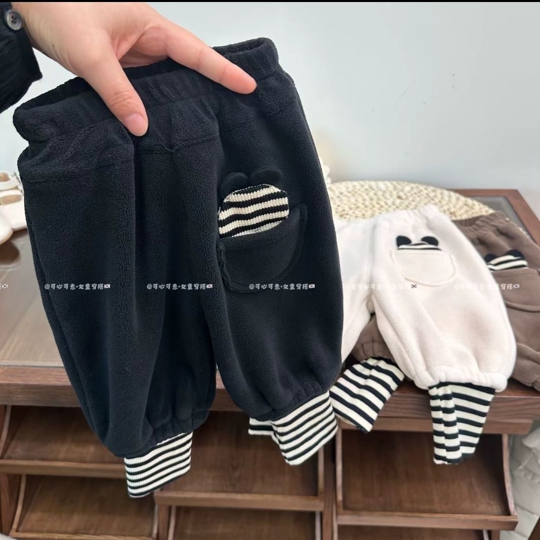 어린이 바지 기모 가을과 겨울 한국 스타일의 따뜻한 바지 소년 소녀를위한 아기 두꺼운 잘 생긴 아기 바지