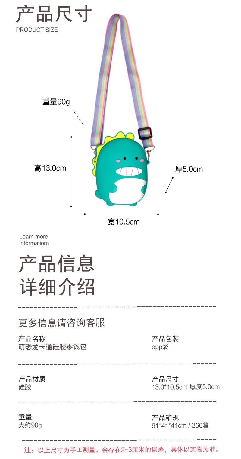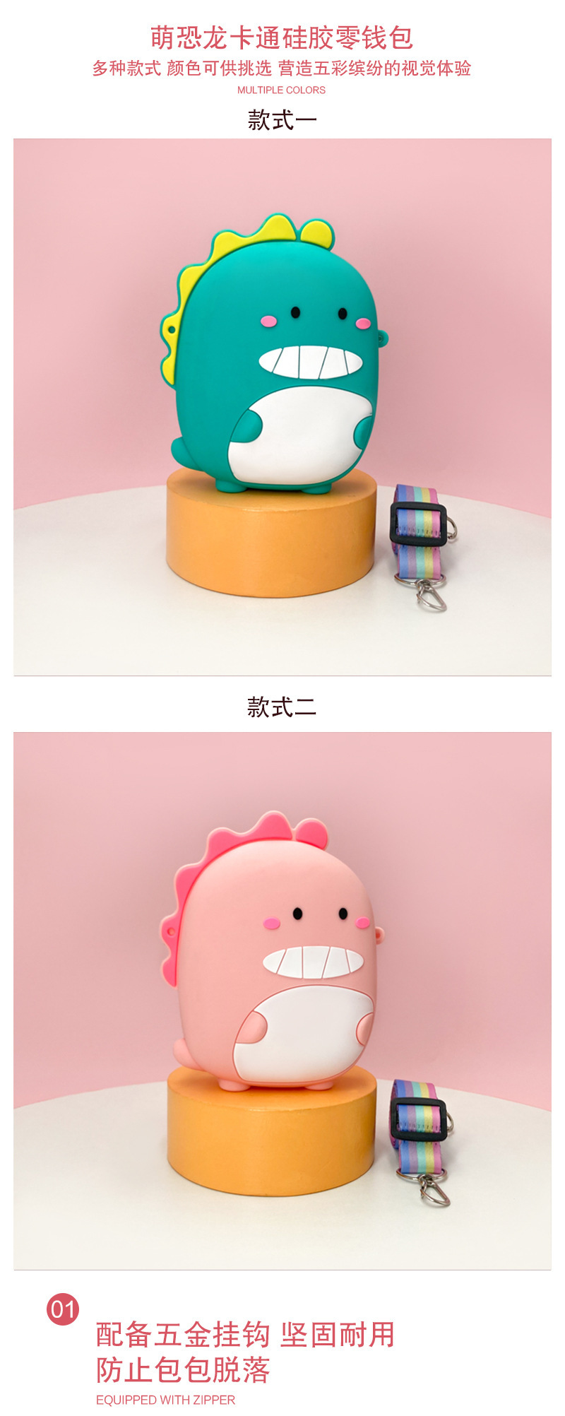 국경 간 재고 일본 만화 애니메이션 귀여운 공룡 실리콘 가방 휴대용 크로스 바디 어깨 가방 소녀 동전 지갑스토어 가기