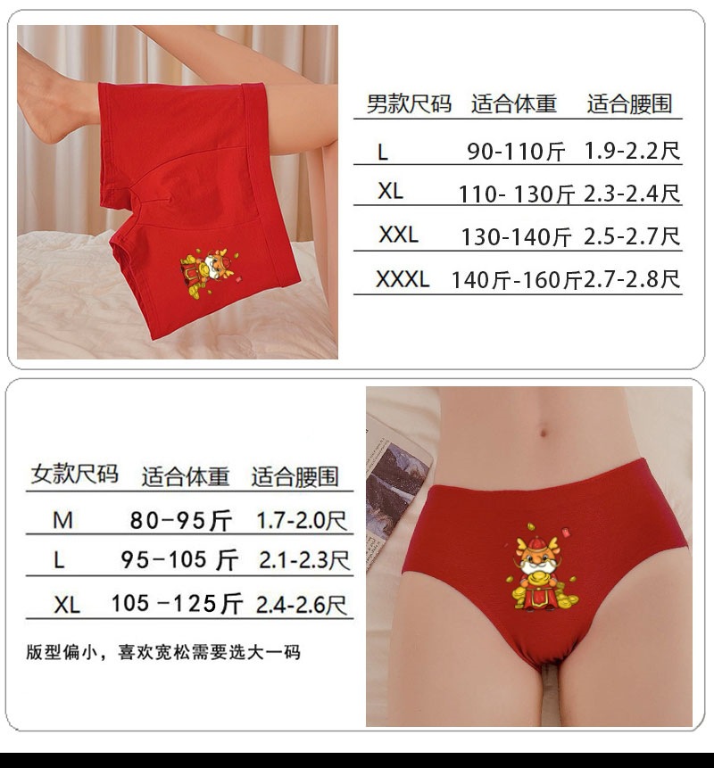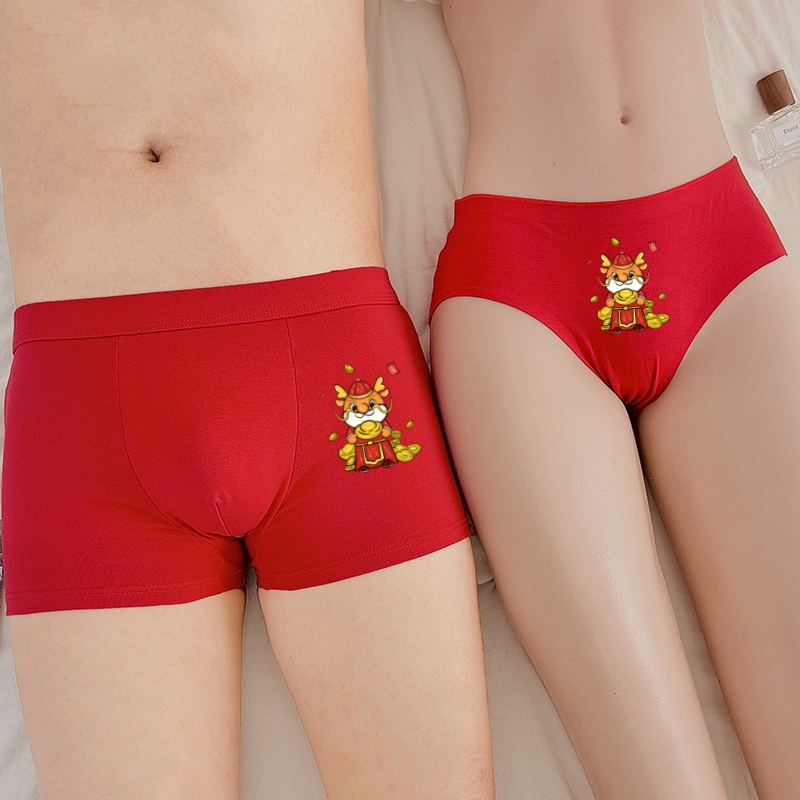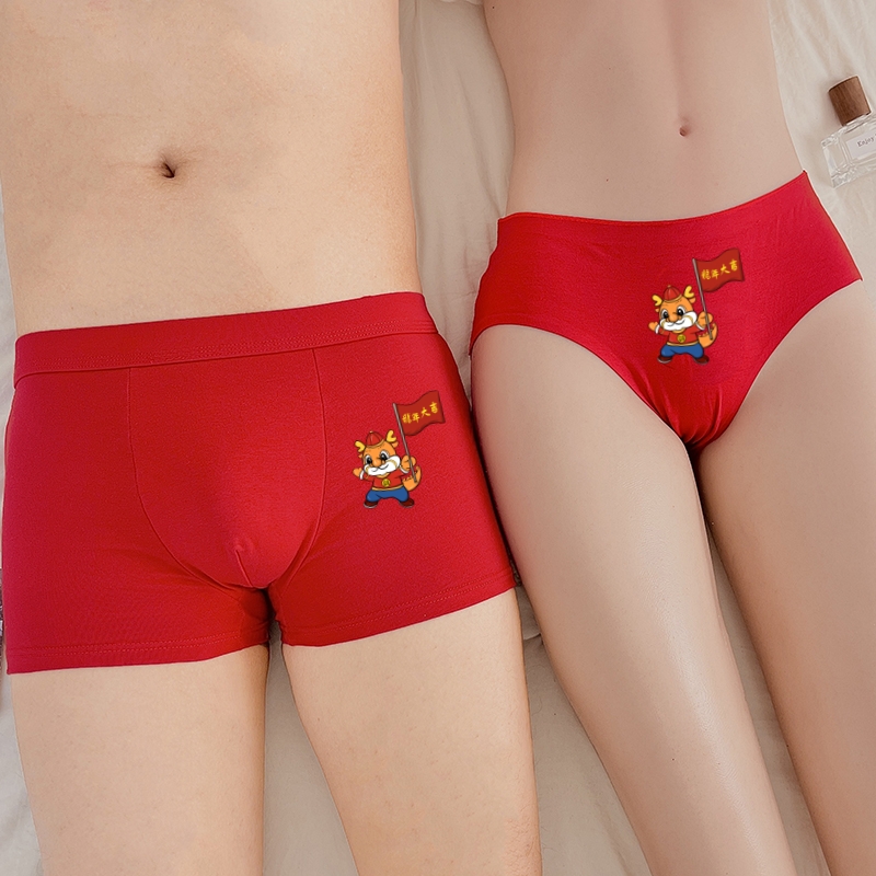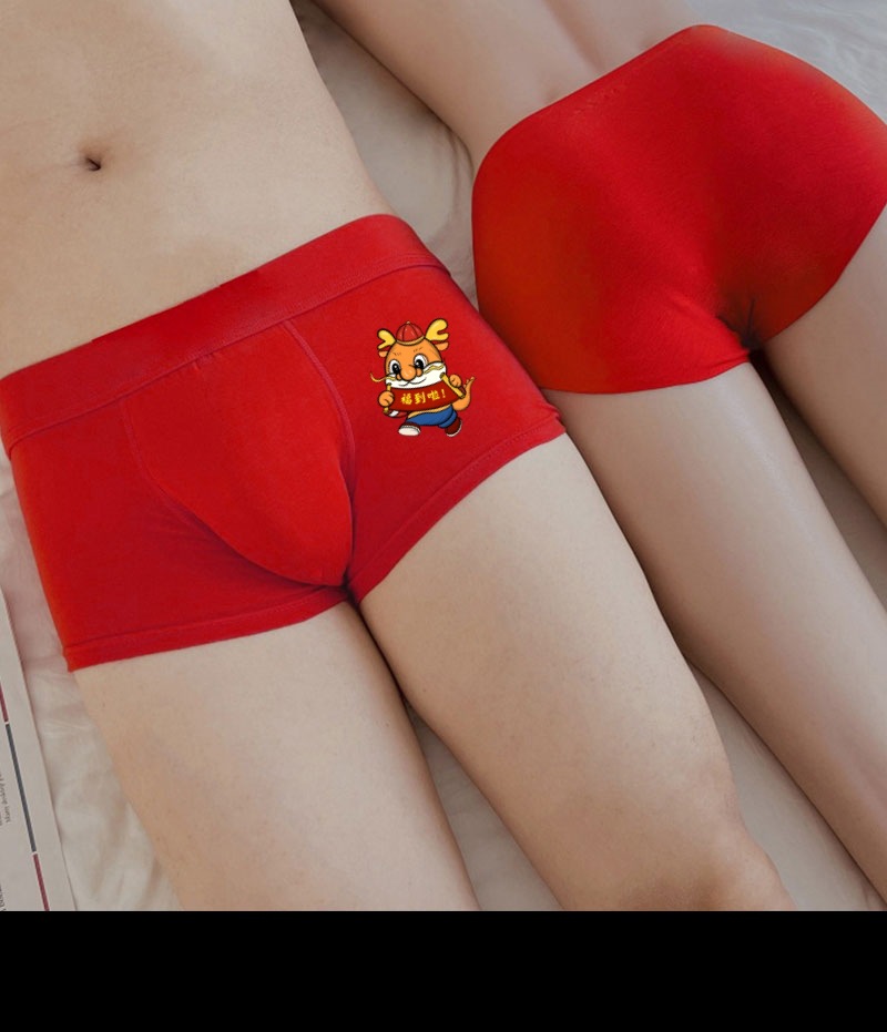 커플 속옷 붉은 출생 년 남성 한 여성 순면 빨간색 귀여운 큰 빨간 반바지 용 년 세트스토어 가기