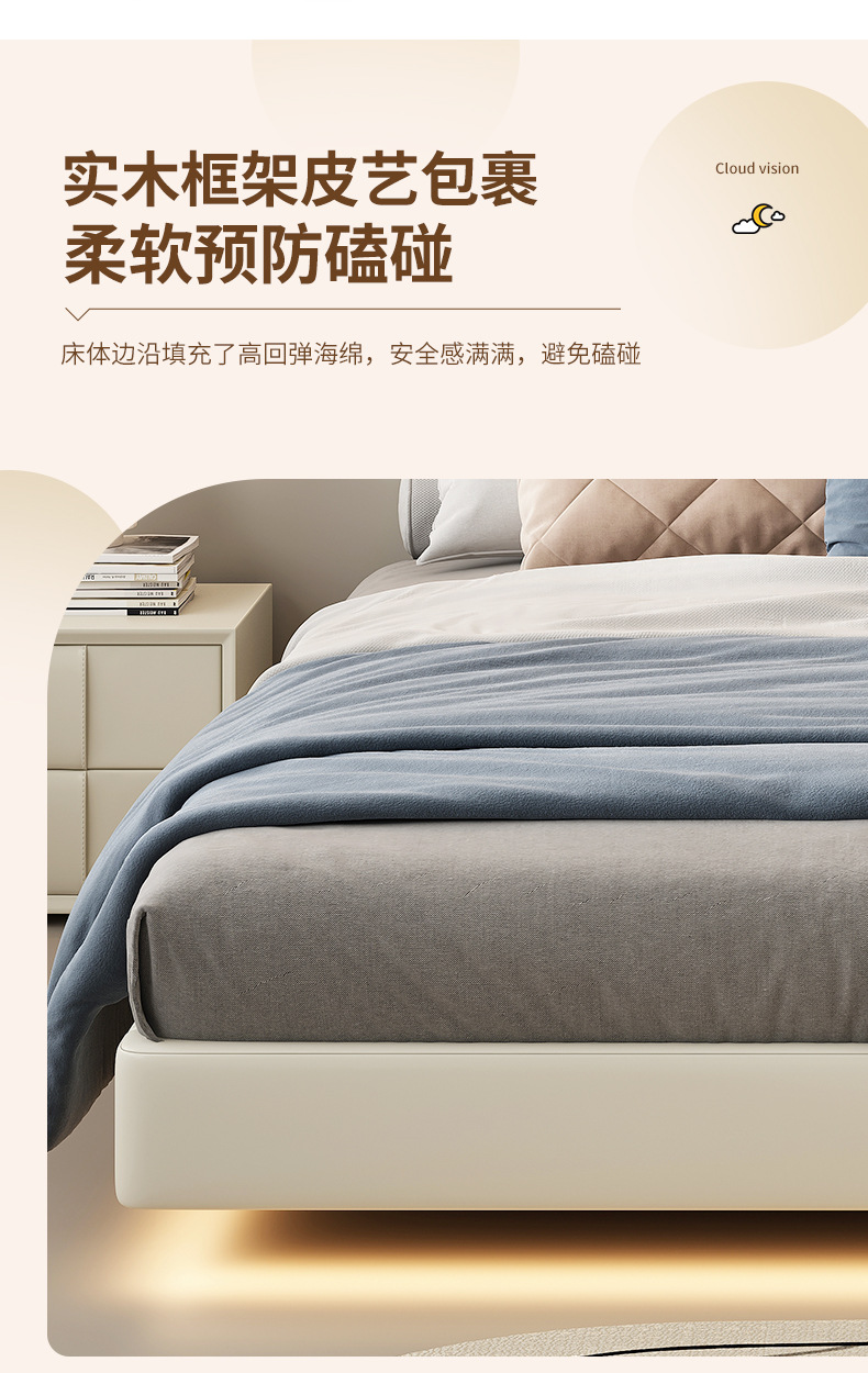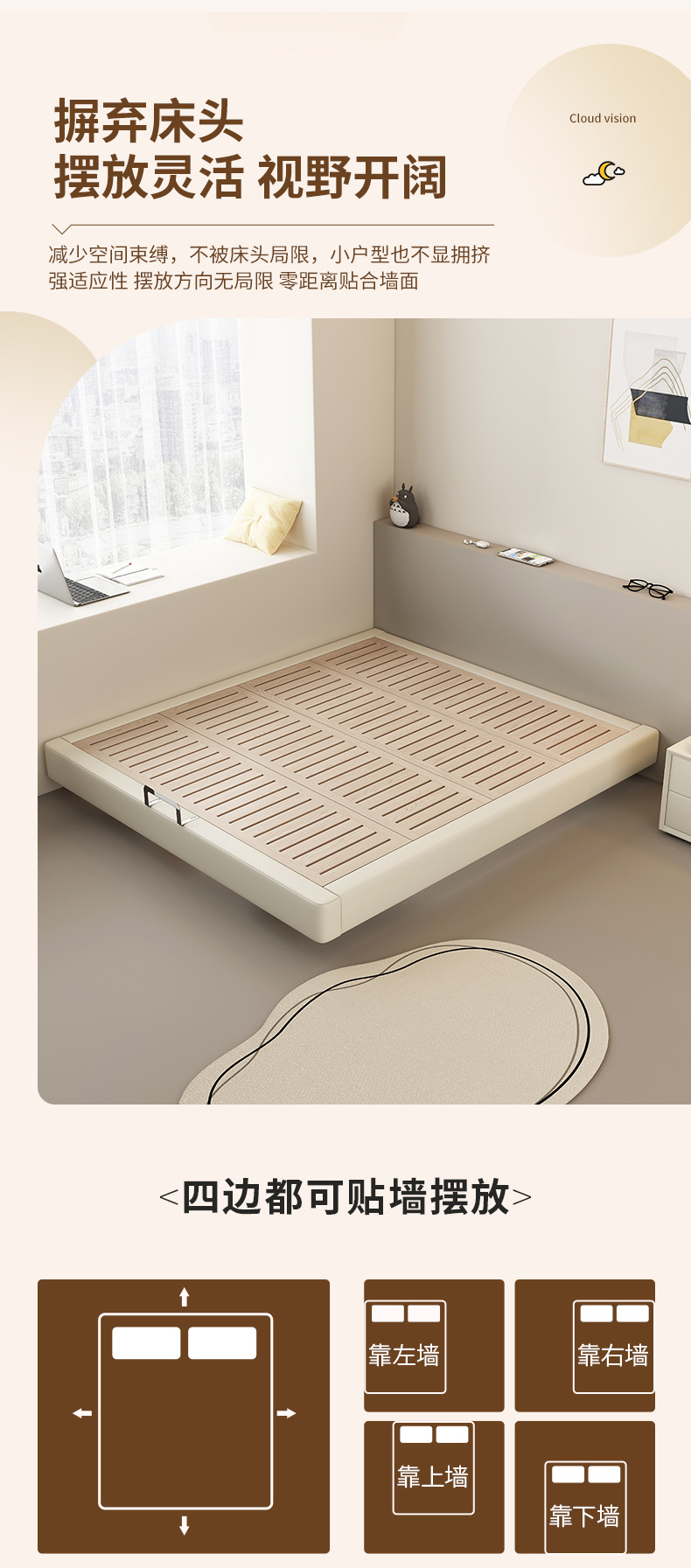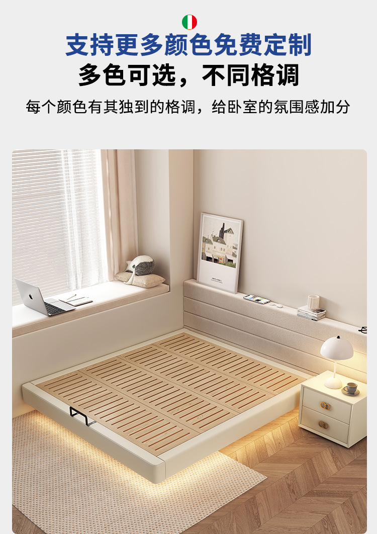 크림 스타일 Leamel 서스펜션 침대 프레임 침대 침대 없음 간단한 현대 Mortise 및 테논 구조 너도밤 나무 랙 침대 등받이 없음
