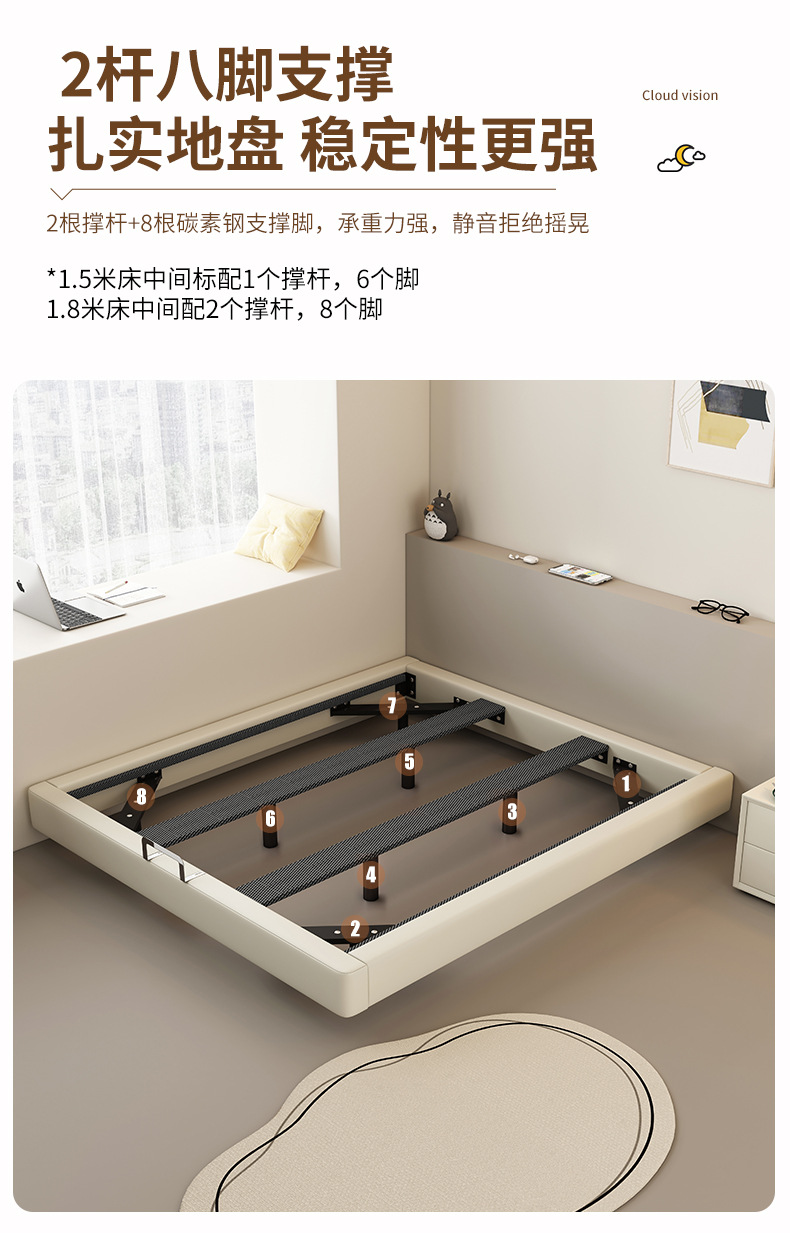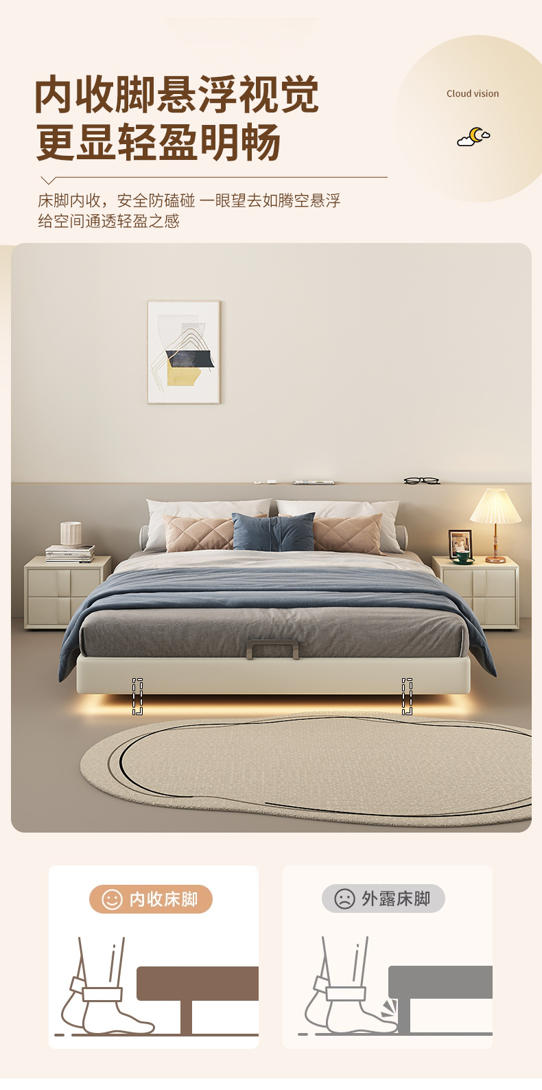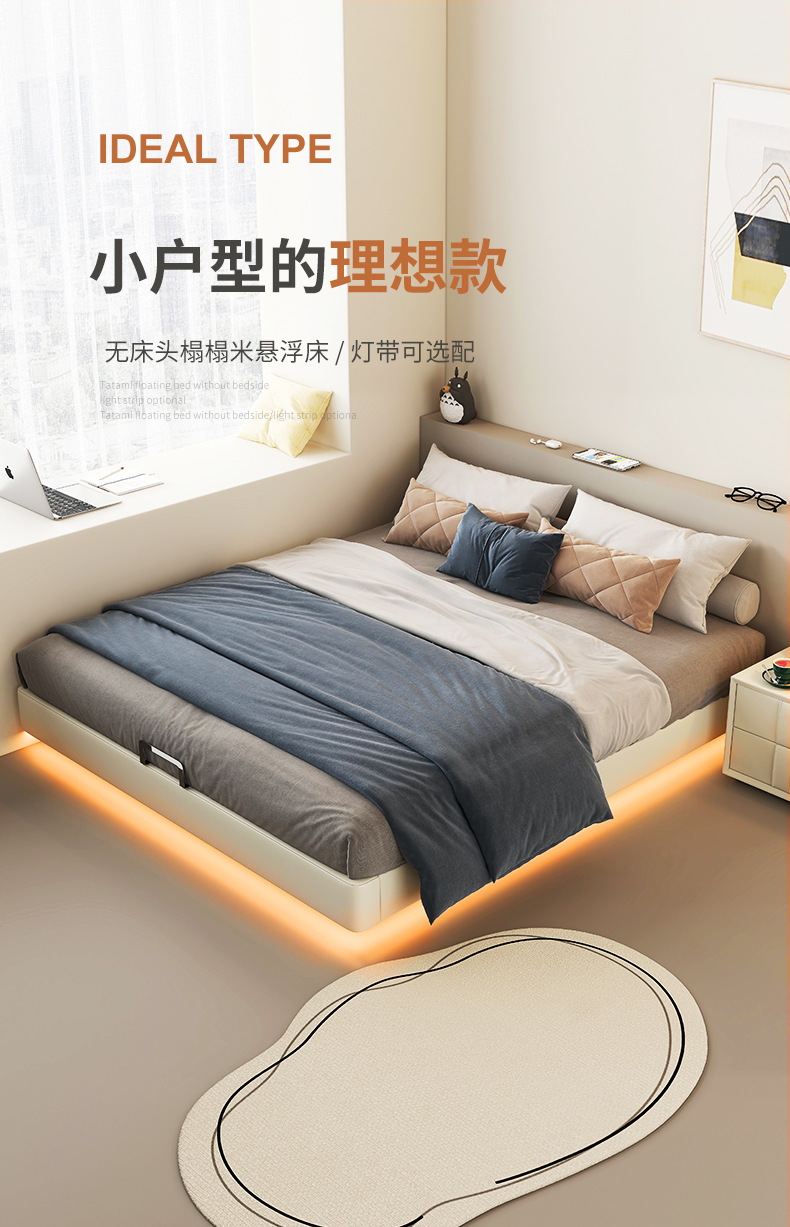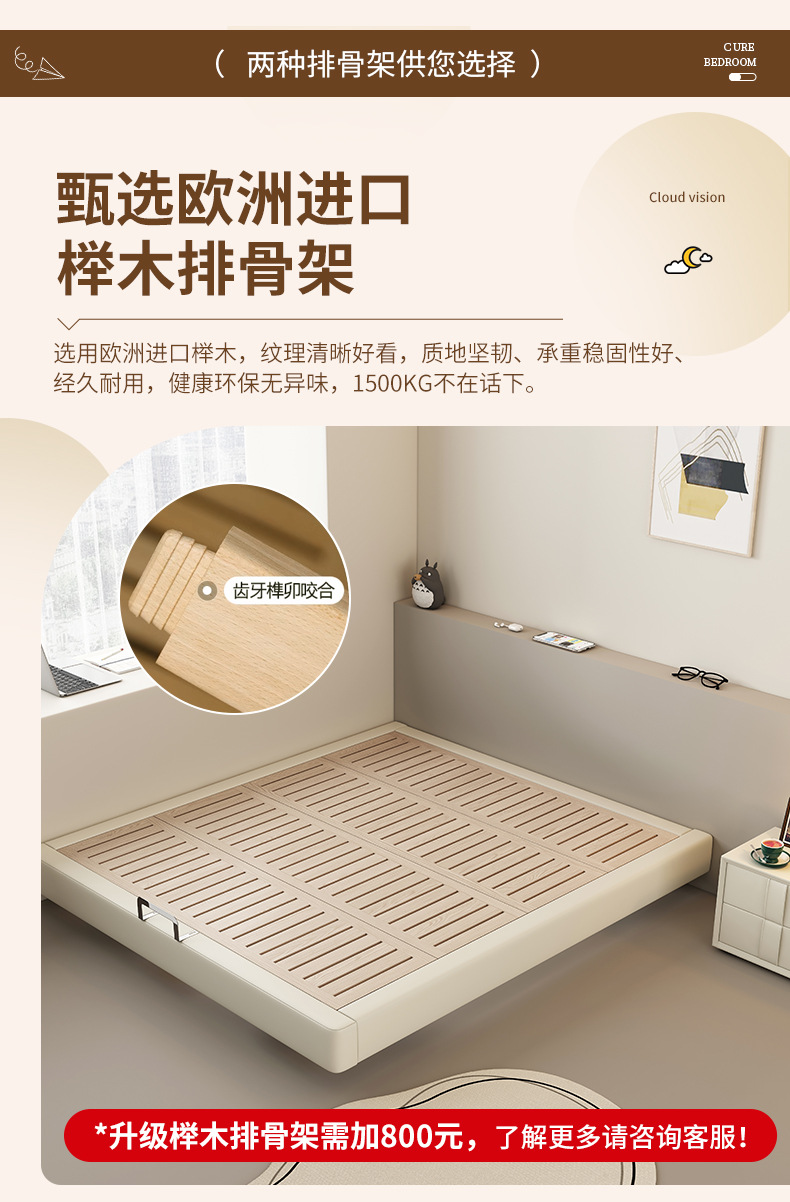 크림 스타일 Leamel 서스펜션 침대 프레임 침대 침대 없음 간단한 현대 Mortise 및 테논 구조 너도밤 나무 랙 침대 등받이 없음스토어 가기
