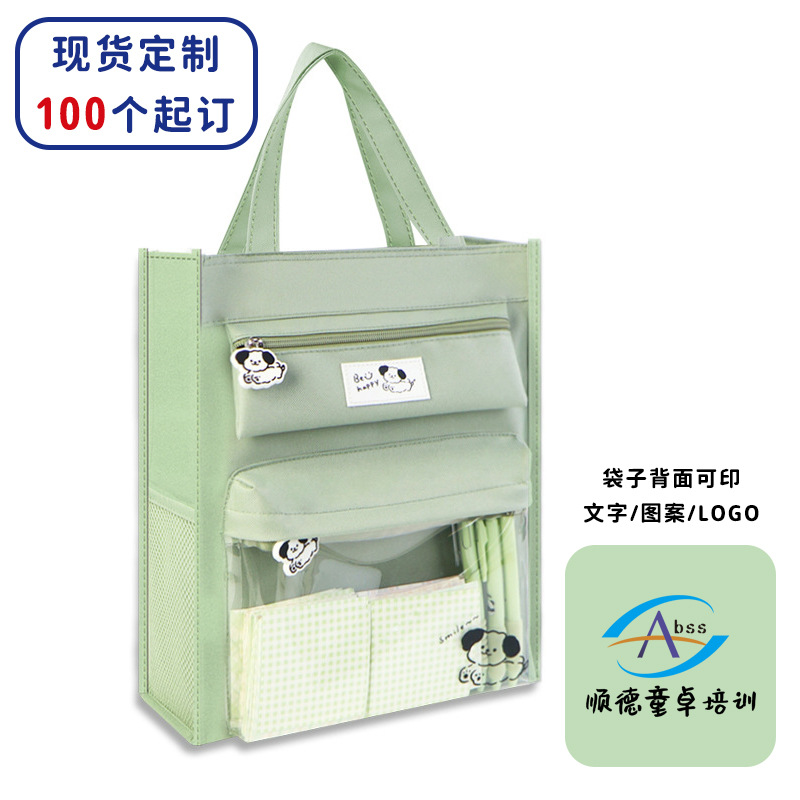 투명한 보충 책 가방 캔버스 보관 휴대용 파일 가방 초등 학생 예술 간단한 캔버스 솔리드 컬러 보충 가방스토어 가기