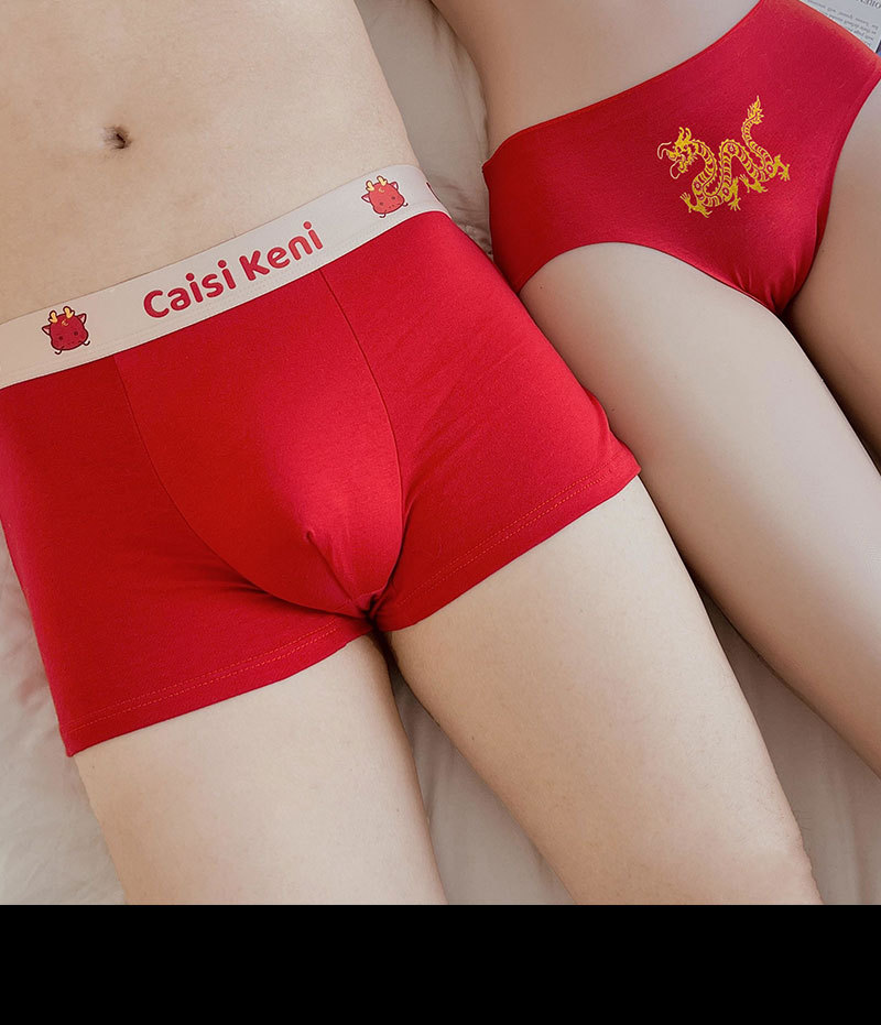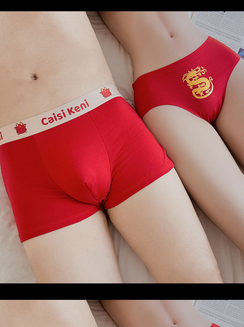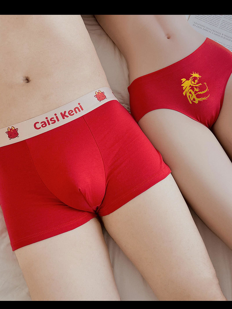 커플 속옷, 귀여운 만화 남성과 여성의 빅 레드 한 남자 한 여자 세트, 2024 소년스토어 가기