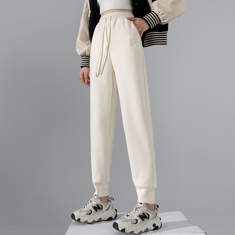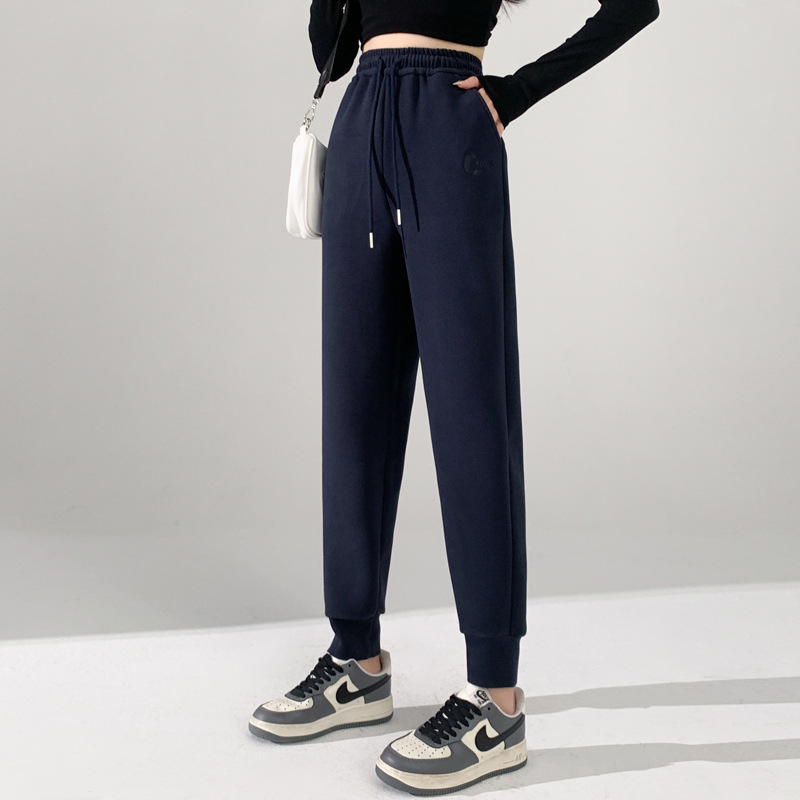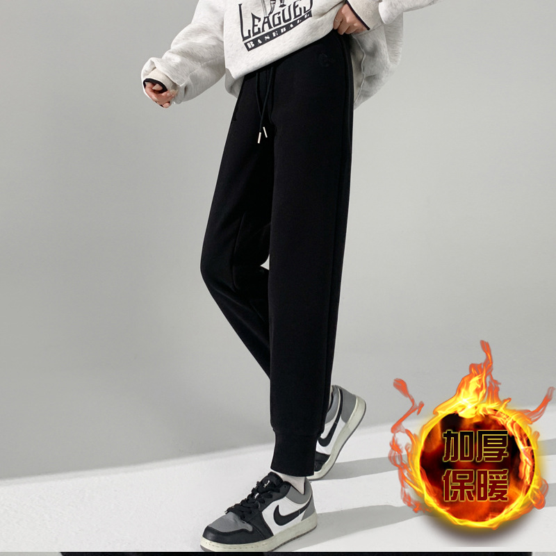 무스 방풍 바지 여성용 2024 겨울 신상품 플러스 벨벳 두꺼운 슬림핏 바지 정전기 방지 스포츠 트렌디 브랜드 캐주얼