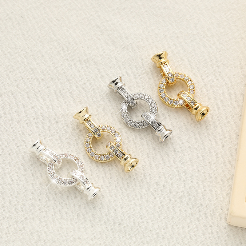 진주 버클 14K 골드 18K 골드 컬러 유지 지르콘 라운드 팔찌 버클 수제 DIY 목걸이 유니버설 버클