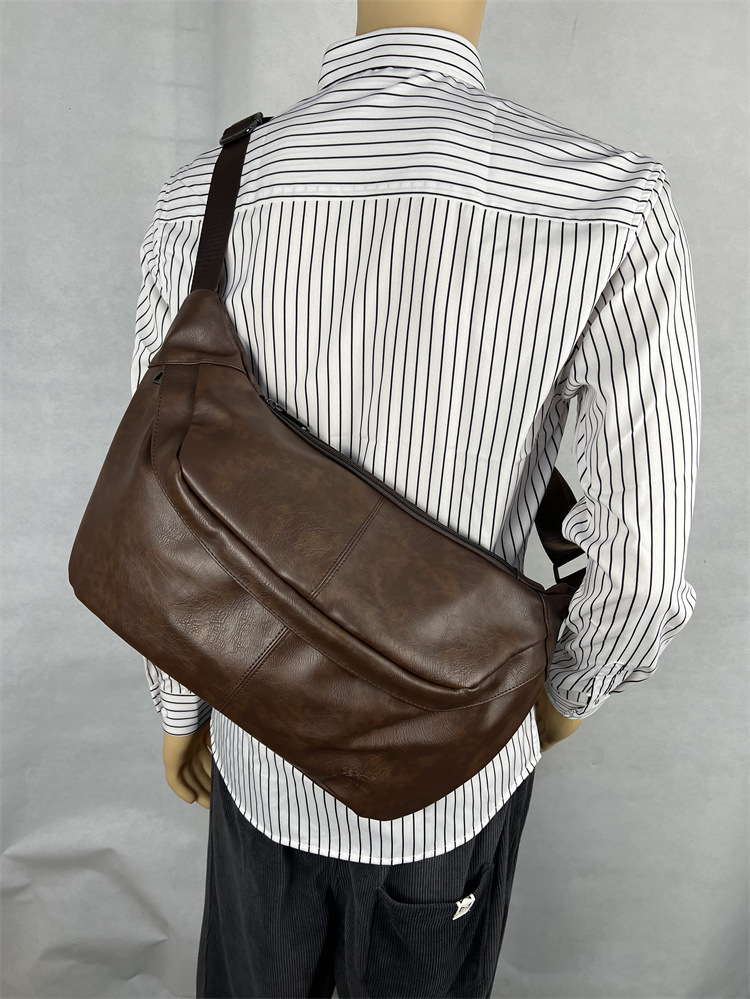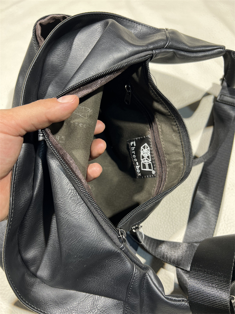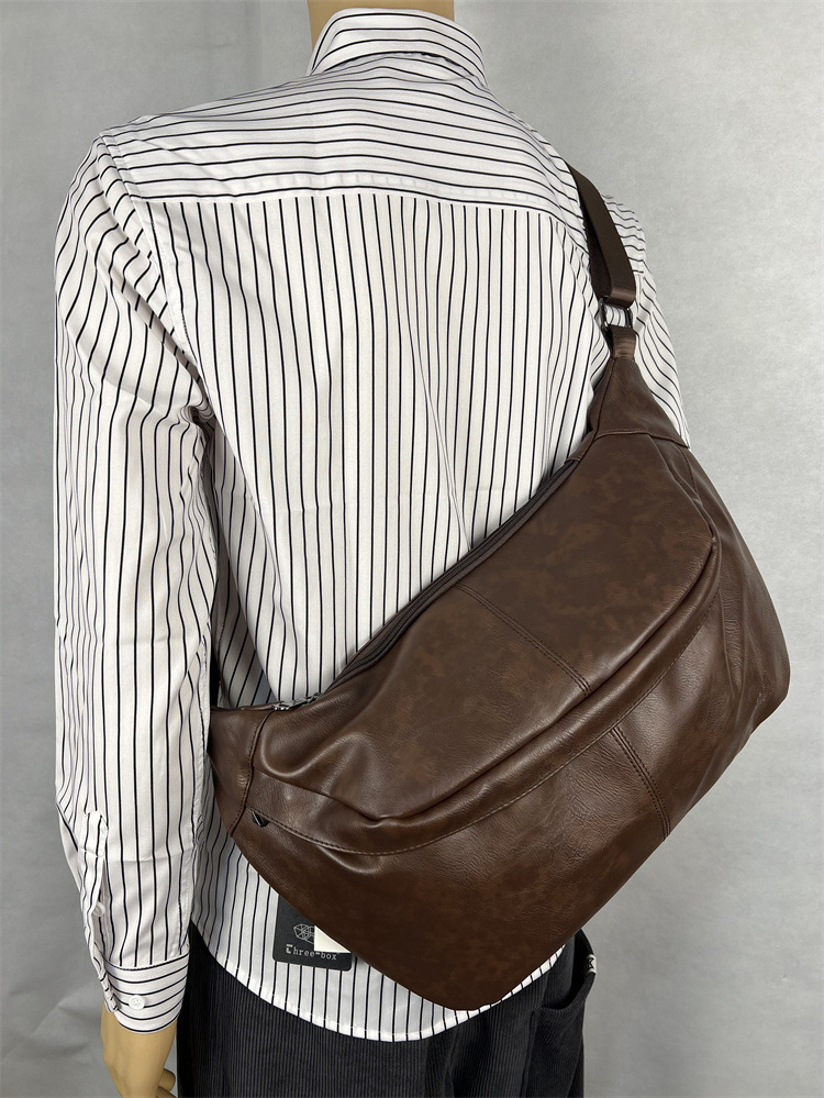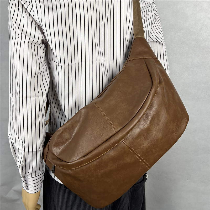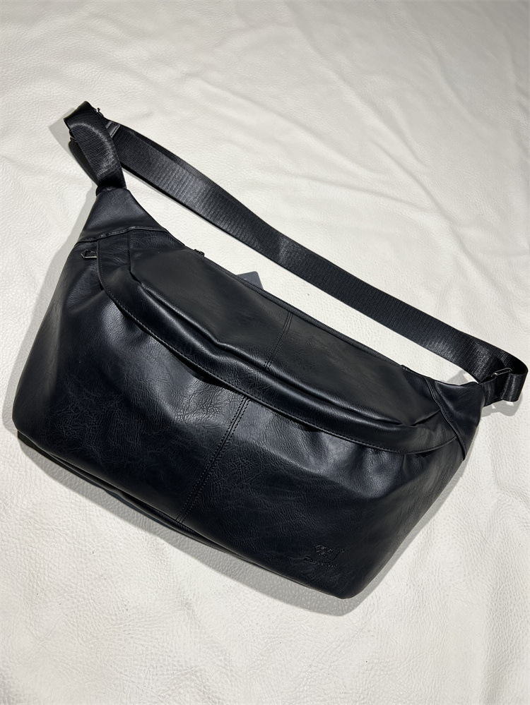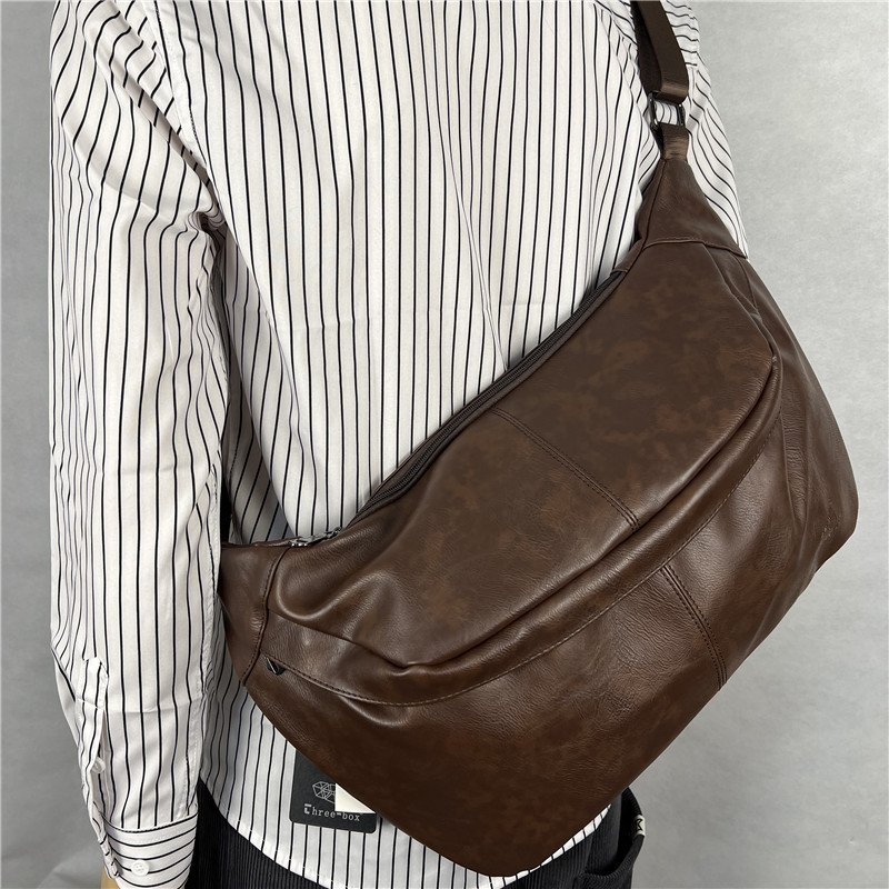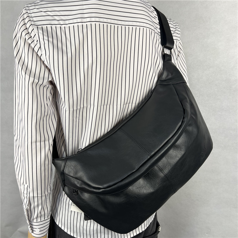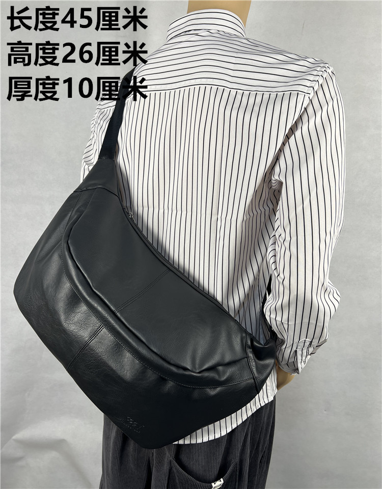 三盒子国潮单肩包男包休闲斜挎包饺子包男大容量斜跨胸包机车背包