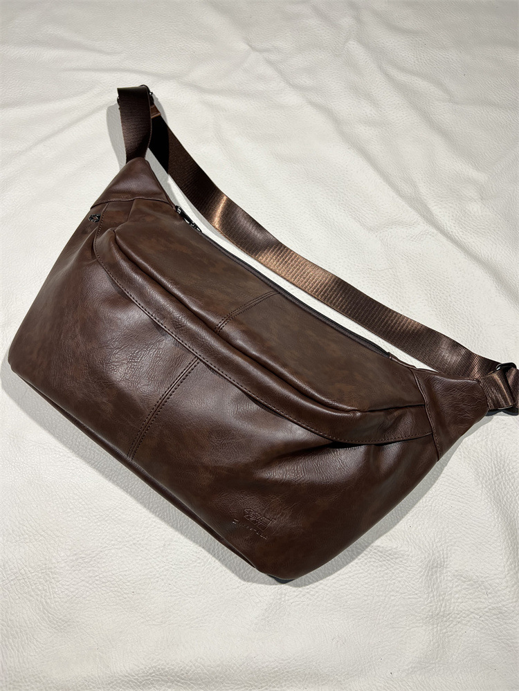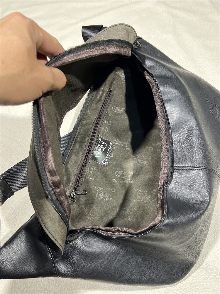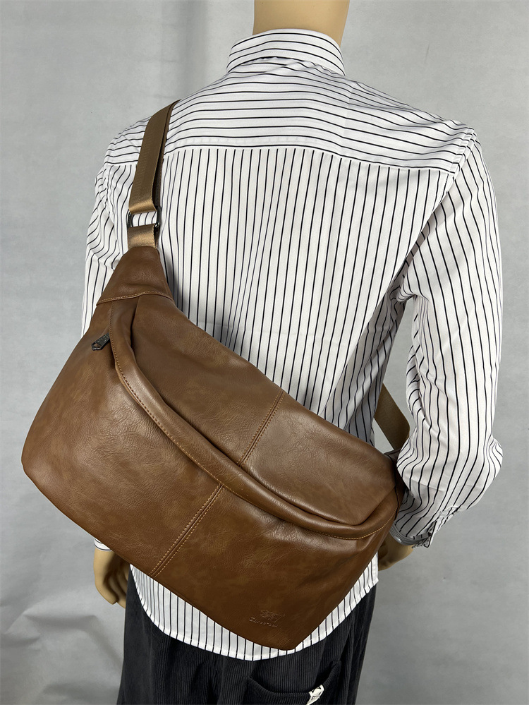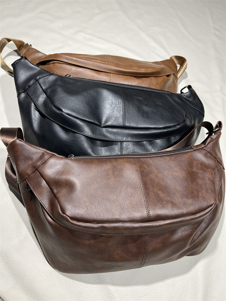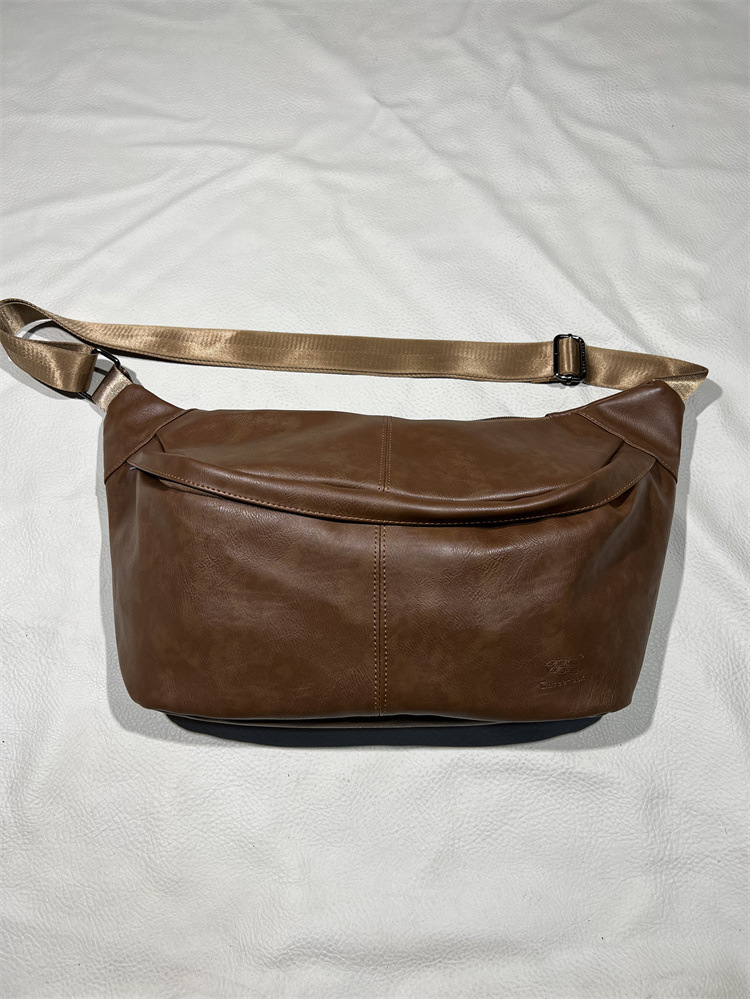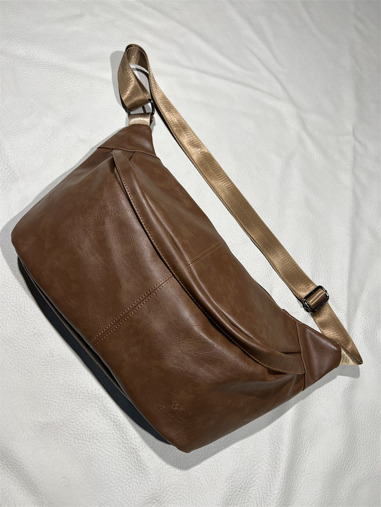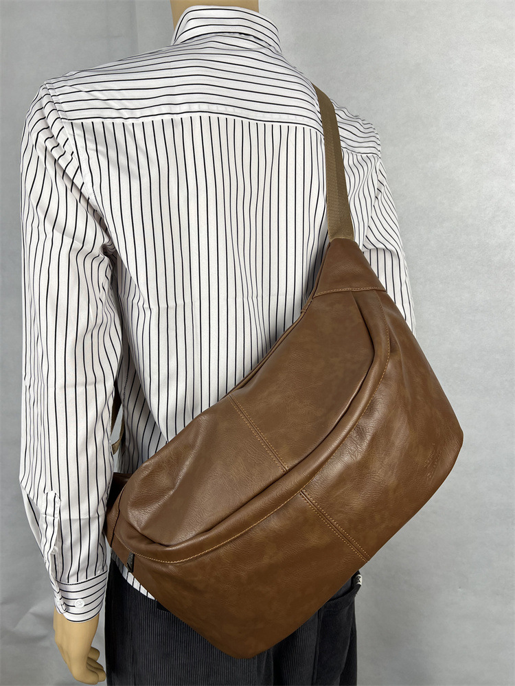 三盒子国潮单肩包男包休闲斜挎包饺子包男大容量斜跨胸包机车背包