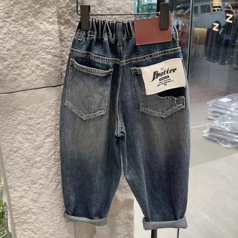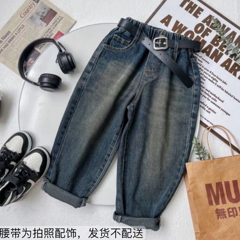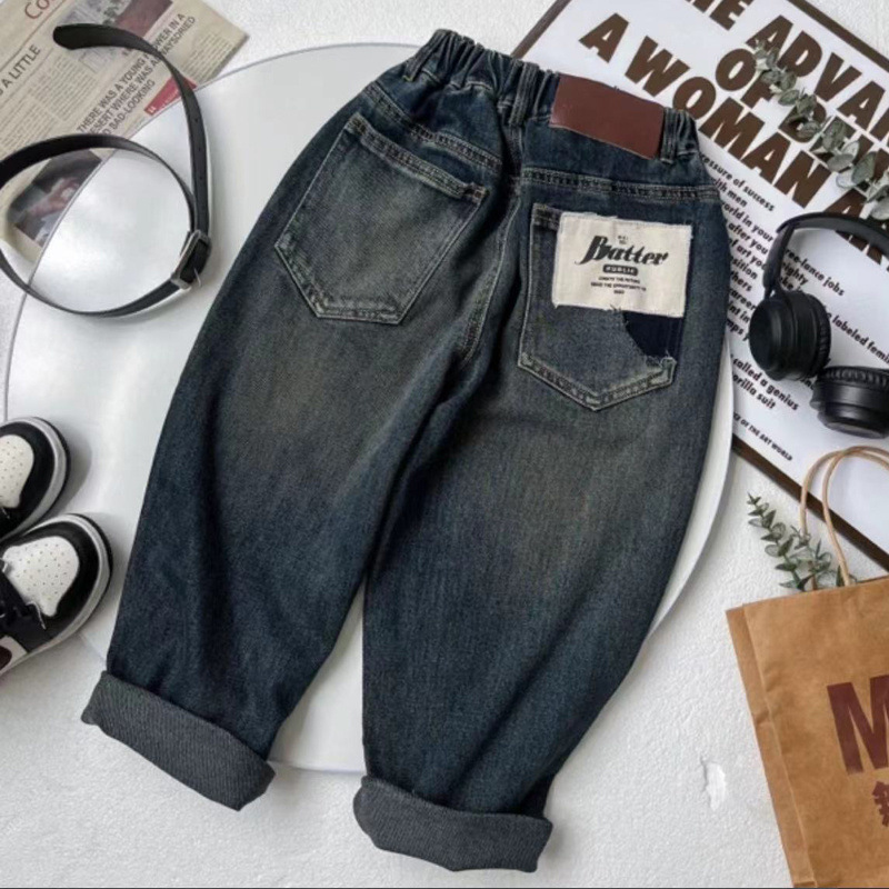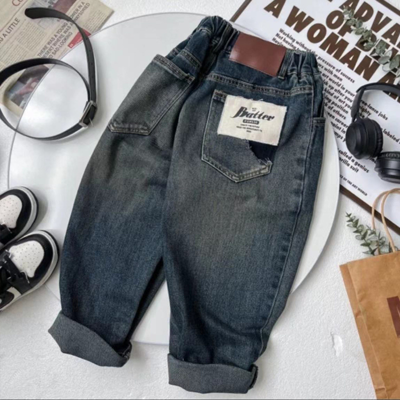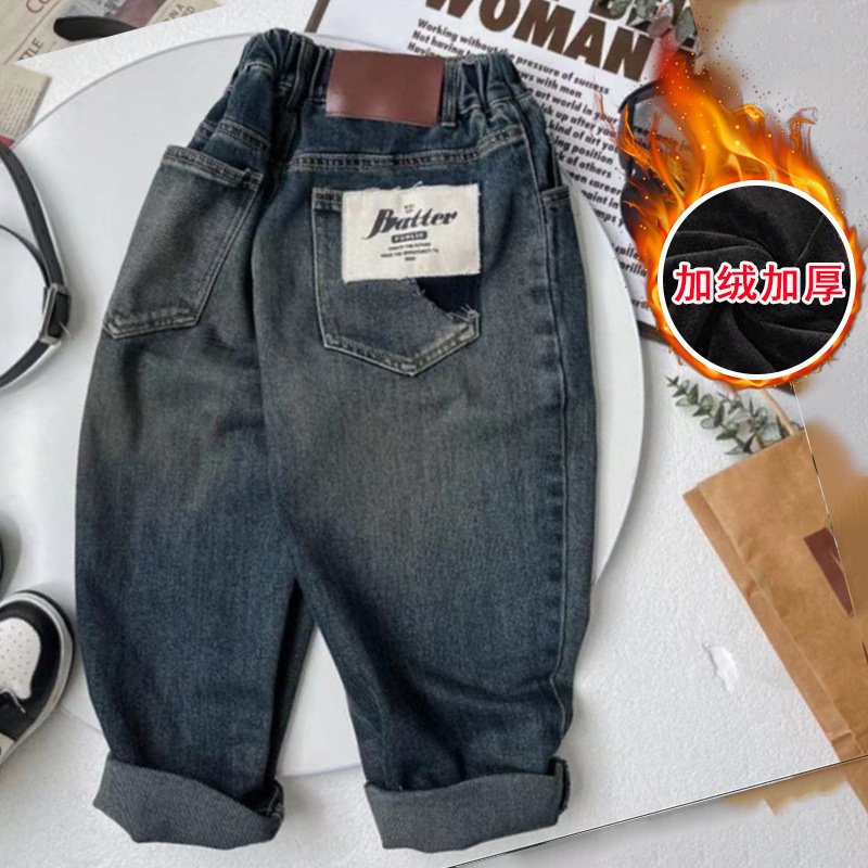 아동복 소년 청바지 2023 새로운 캐주얼 어린이 바지 원피스 벨벳 느슨한 한국 스타일 트렌디 바지스토어 가기