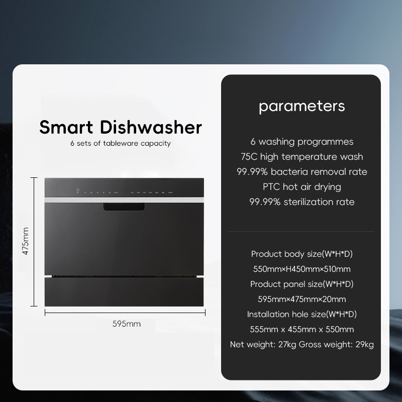 국경 간 전용 공급 | 내장형 데스크탑 가정용 식기세척기 6세트 | 220V/110V 영국/미국/유럽 표준 외국 무역용 자동화 장치