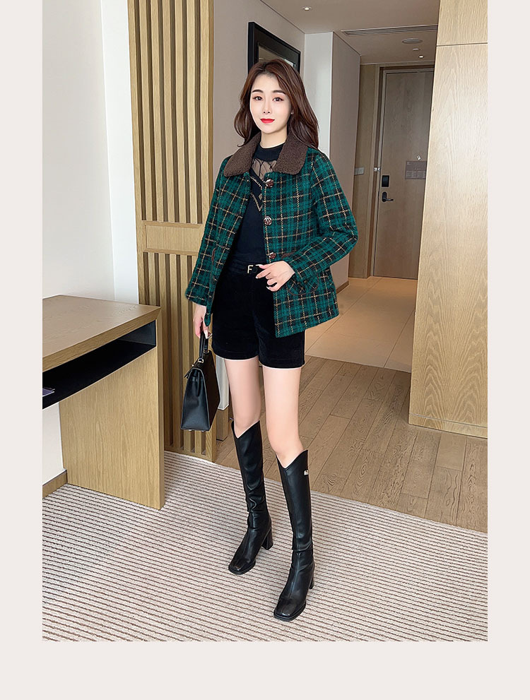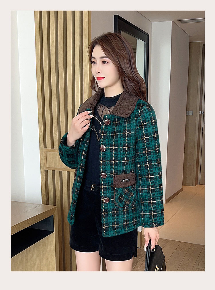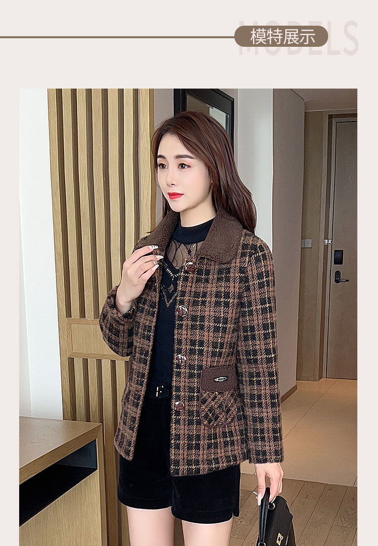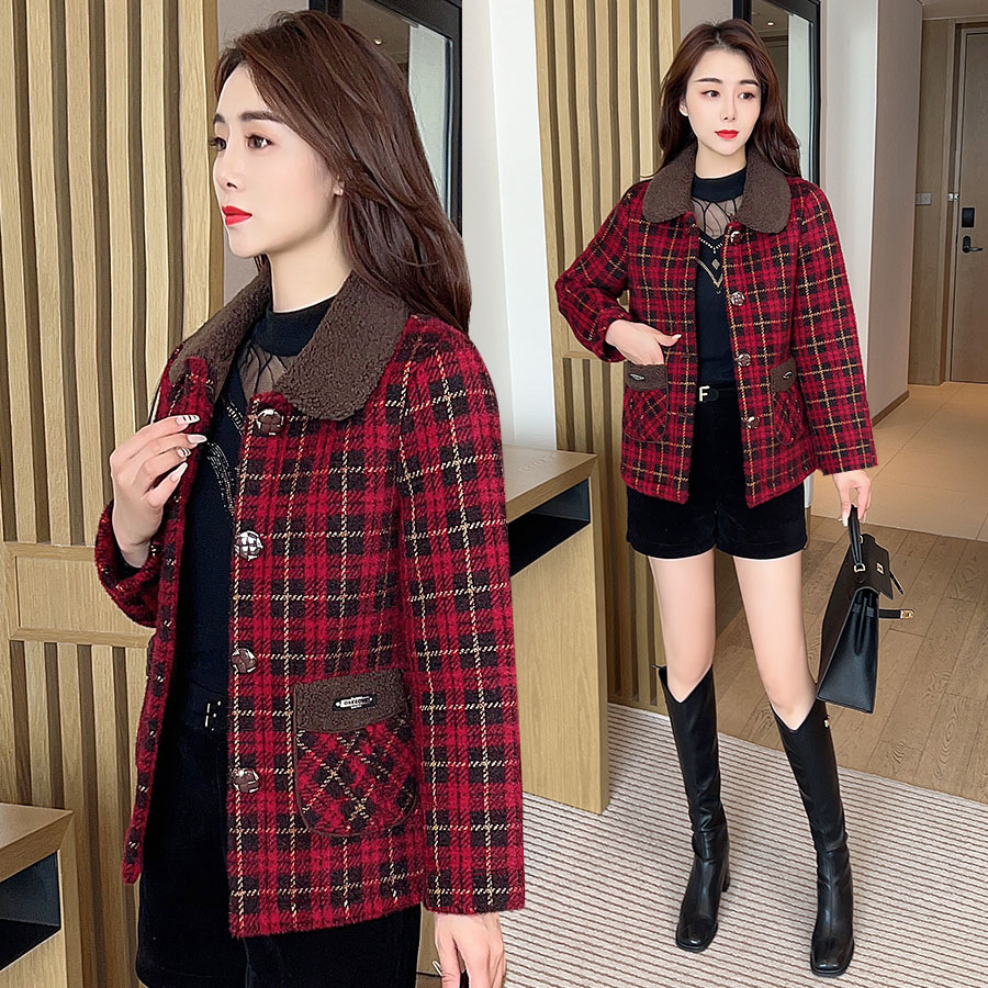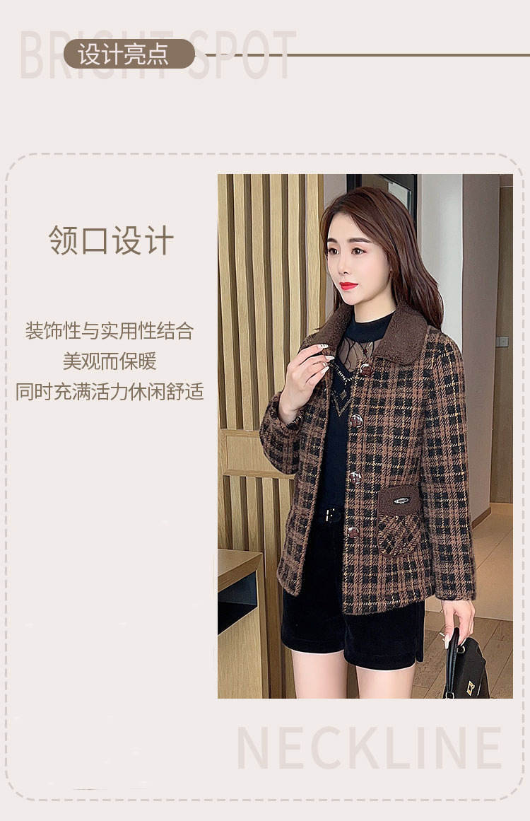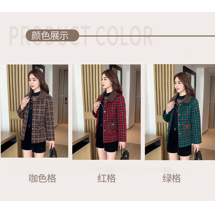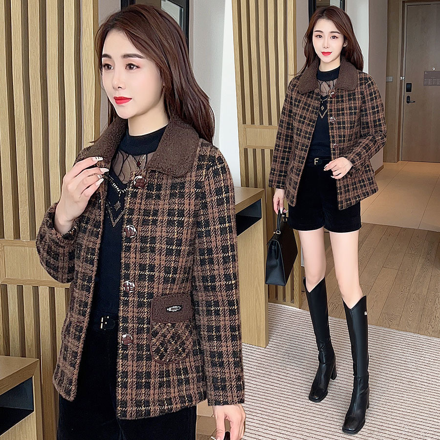 중년 엄마 가을과 겨울은 새로운 중년 및 노인 여성의 겉옷 체크 무늬 스퀘어 칼라를 2023 세련된 서양식 코트를 착용합니다.스토어 가기