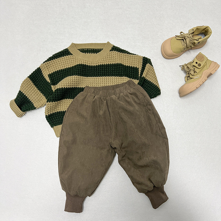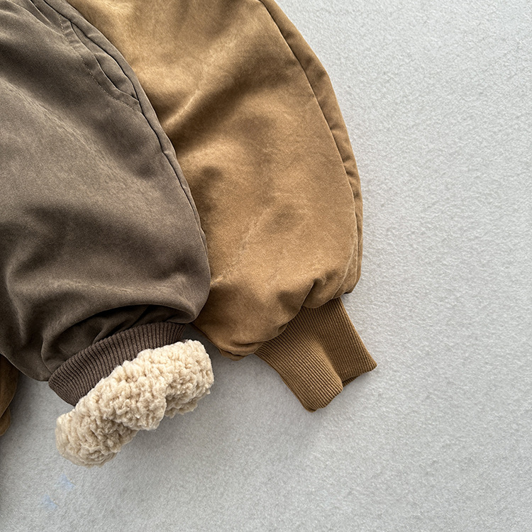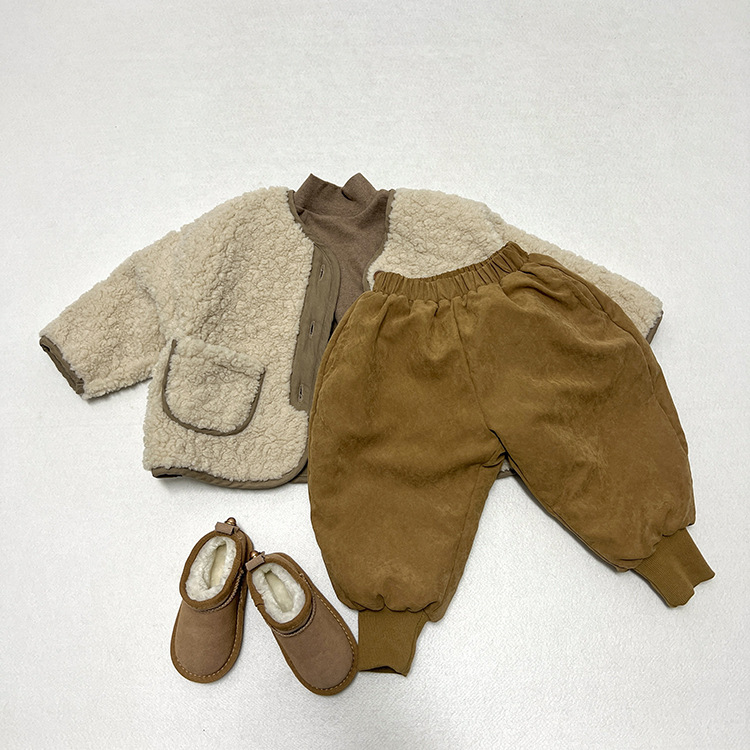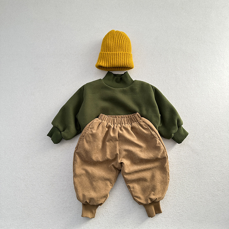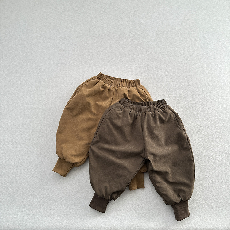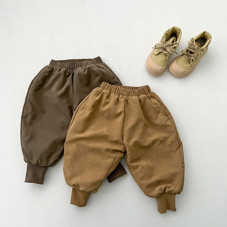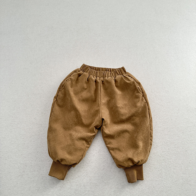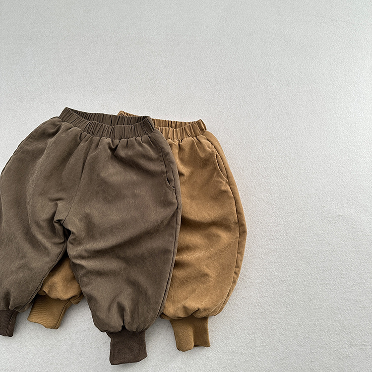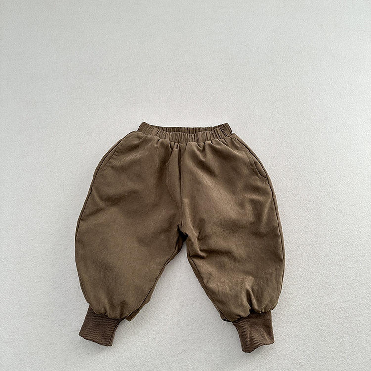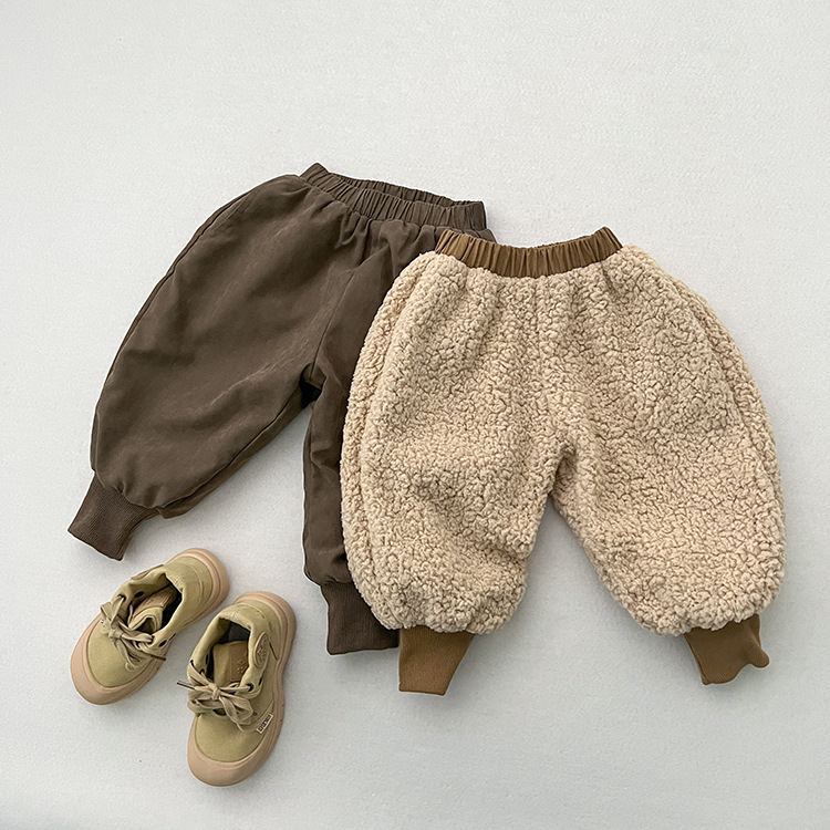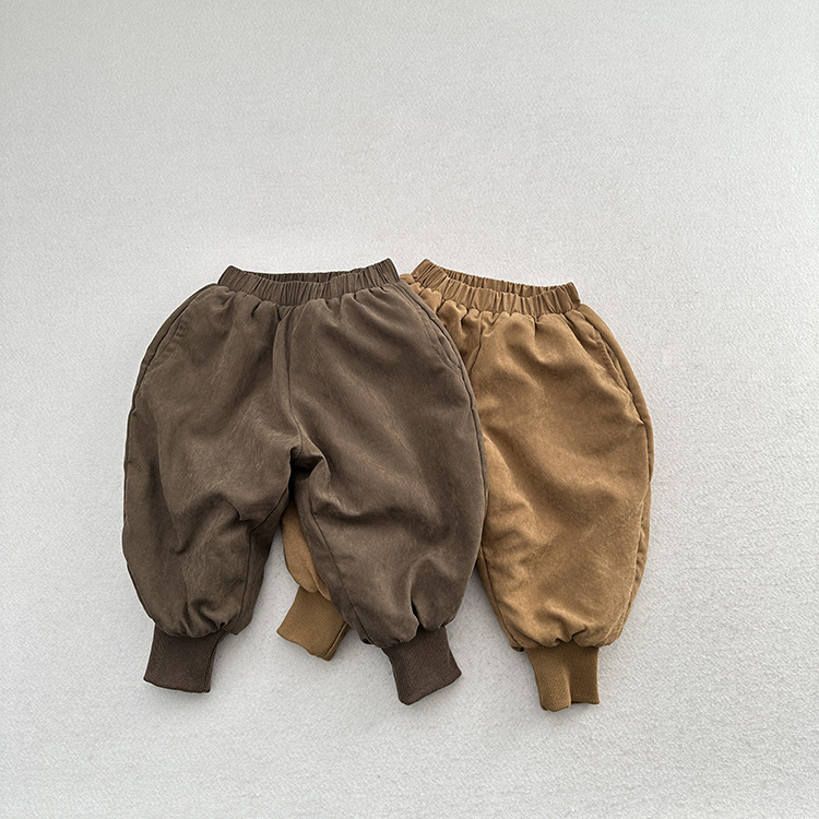 겨울 새로운 어린이 기모 두꺼운 유치원 바지 남성과 여성의 복고풍 따뜻한 람스울 캐주얼 바지