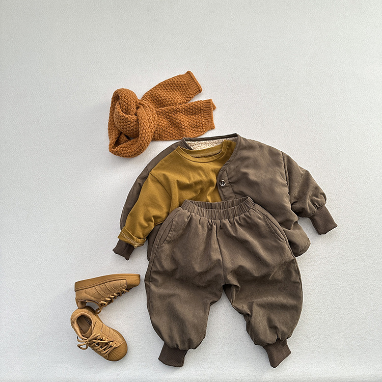 겨울 새로운 어린이 기모 두꺼운 유치원 바지 남성과 여성의 복고풍 따뜻한 람스울 캐주얼 바지스토어 가기