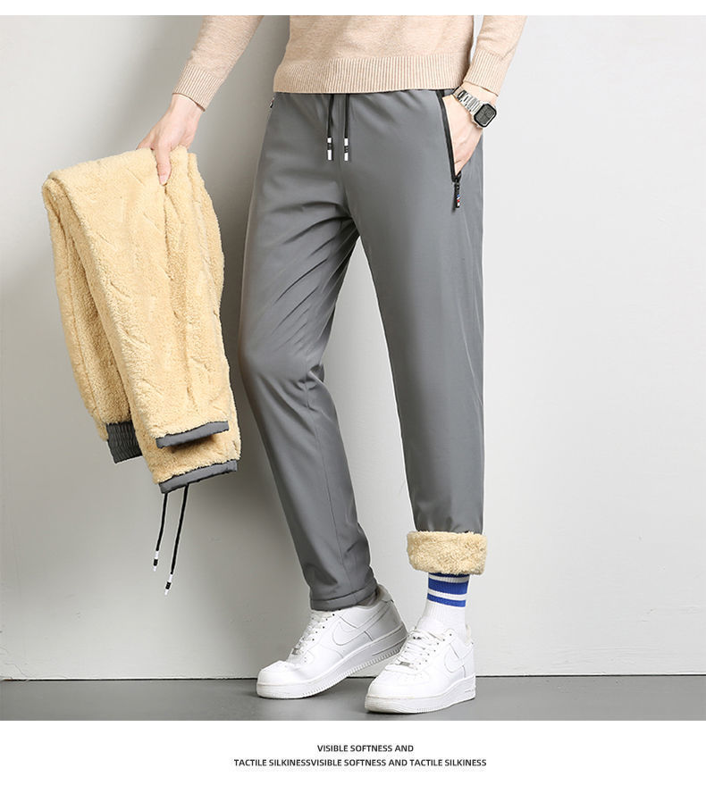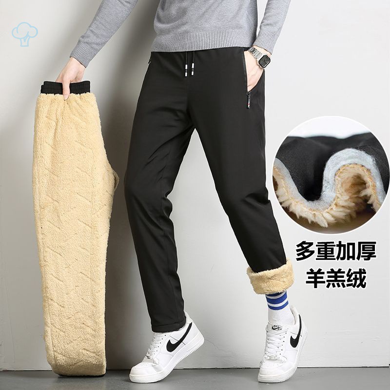 남성용 겨울 기모 두꺼운 면화 냉찜질 따뜻한 플러스 사이즈 람스울 롱 팬츠 느슨한 스포츠 캐주얼 스웨트 팬츠스토어 가기
