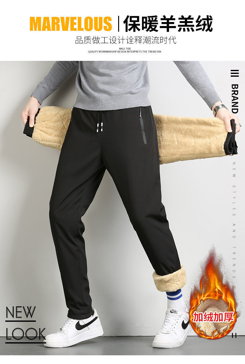 남성용 겨울 기모 두꺼운 면화 냉찜질 따뜻한 플러스 사이즈 람스울 롱 팬츠 느슨한 스포츠 캐주얼 스웨트 팬츠