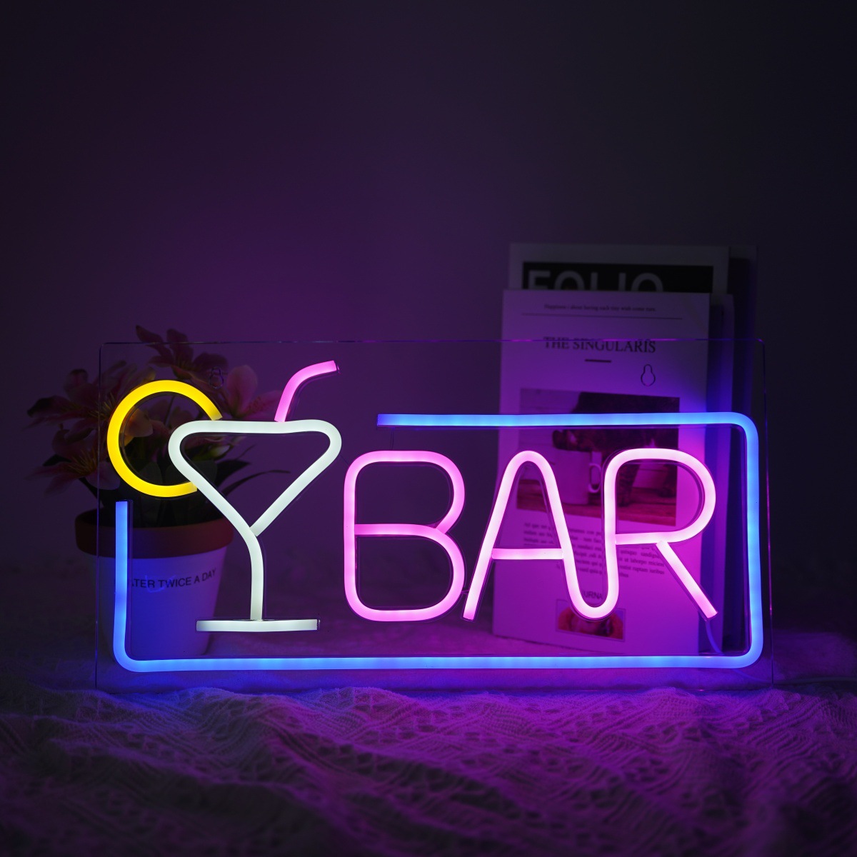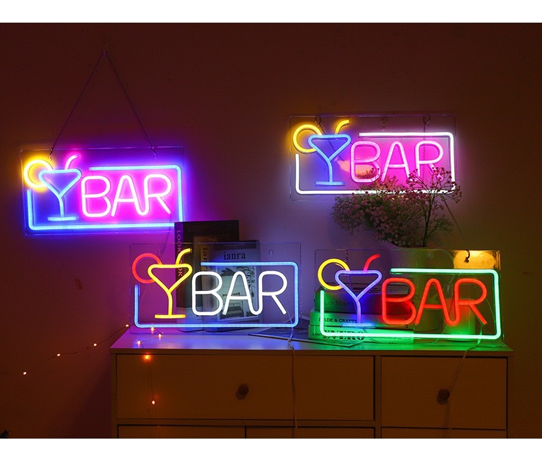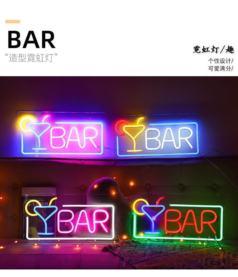 국경을 넘는 신형 LED 네온 라이트 바 분위기 조명 와인잔 분위기 조명 실내 발광 조명 장식등