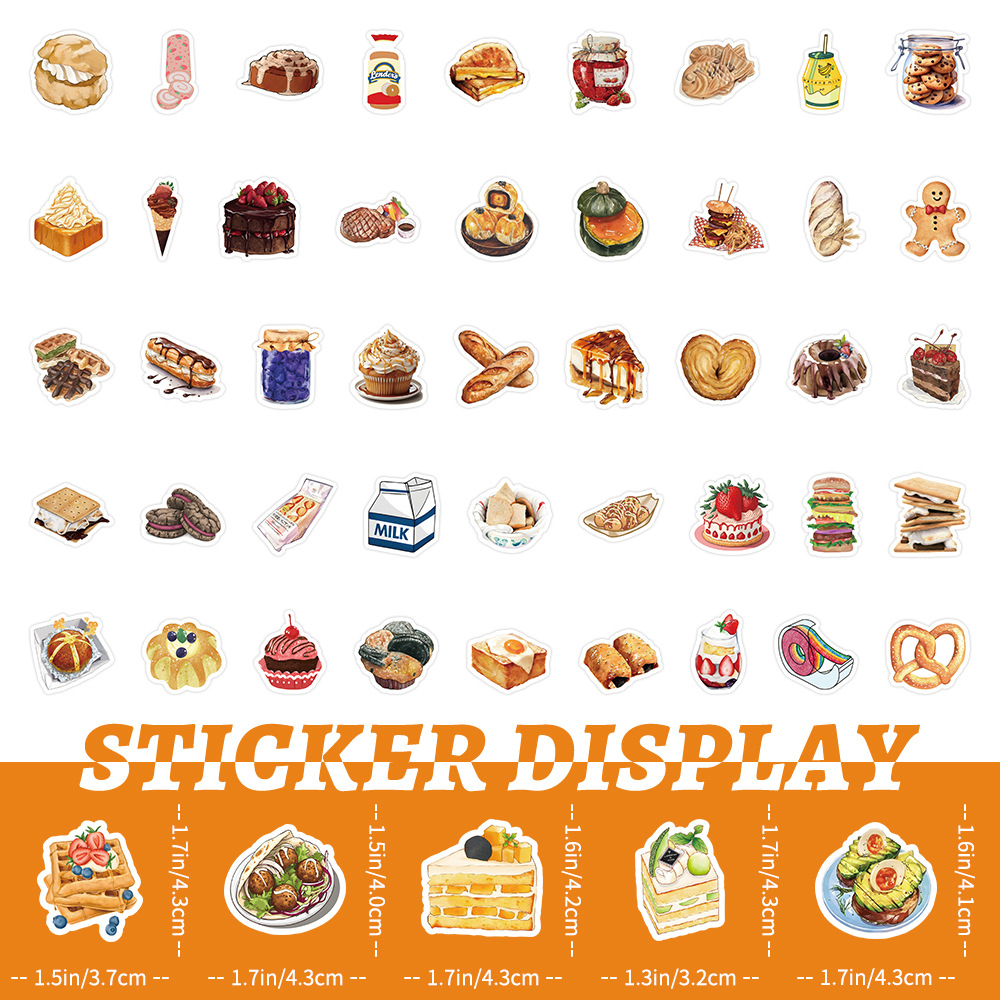 100 조각 사탕 음료 스낵 가방 스티커 쿠키 빵 창조적 인 장식 노트북 문구 손 계정 DIY 스티커