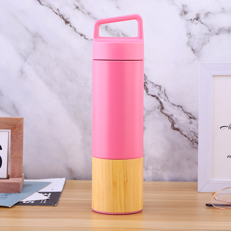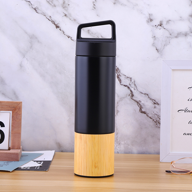• 스테인레스 스틸 핸들 대나무 커버 컵