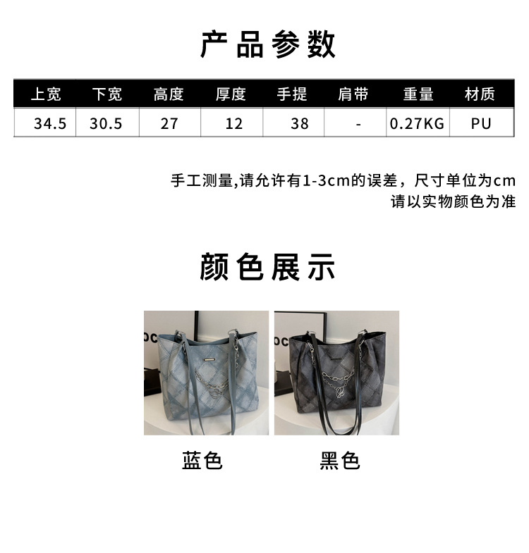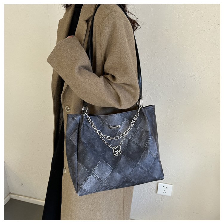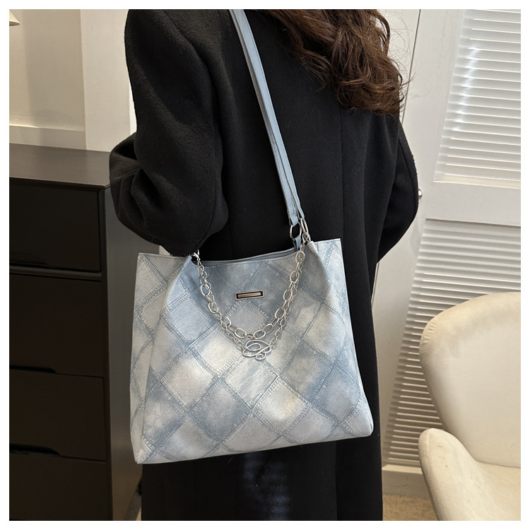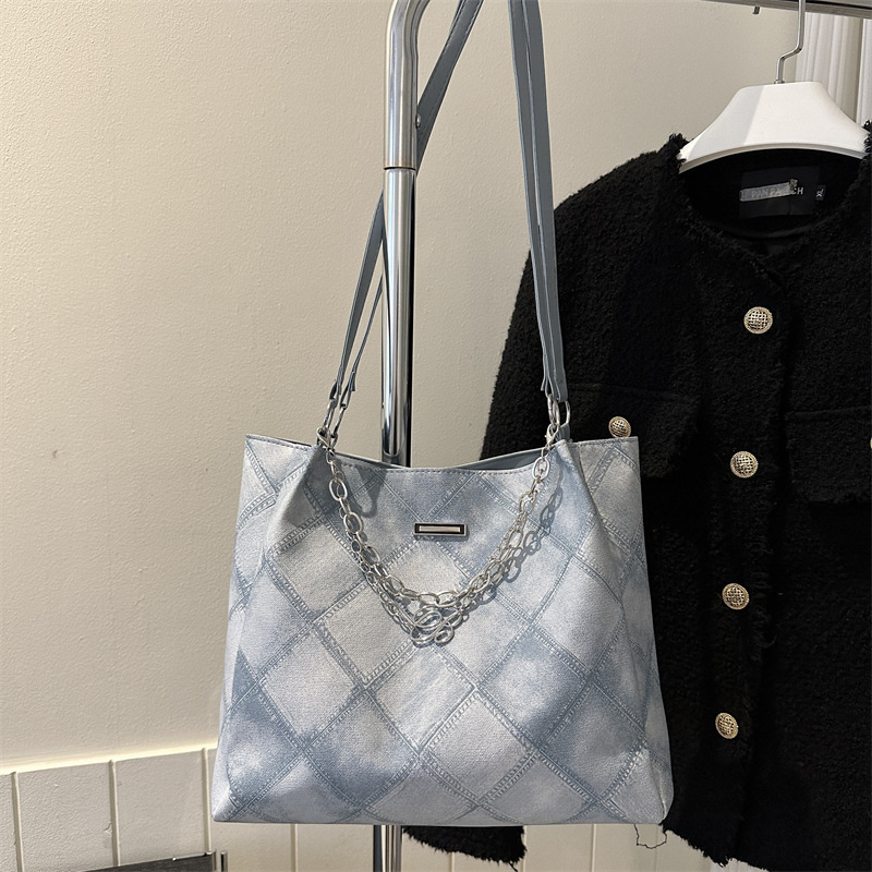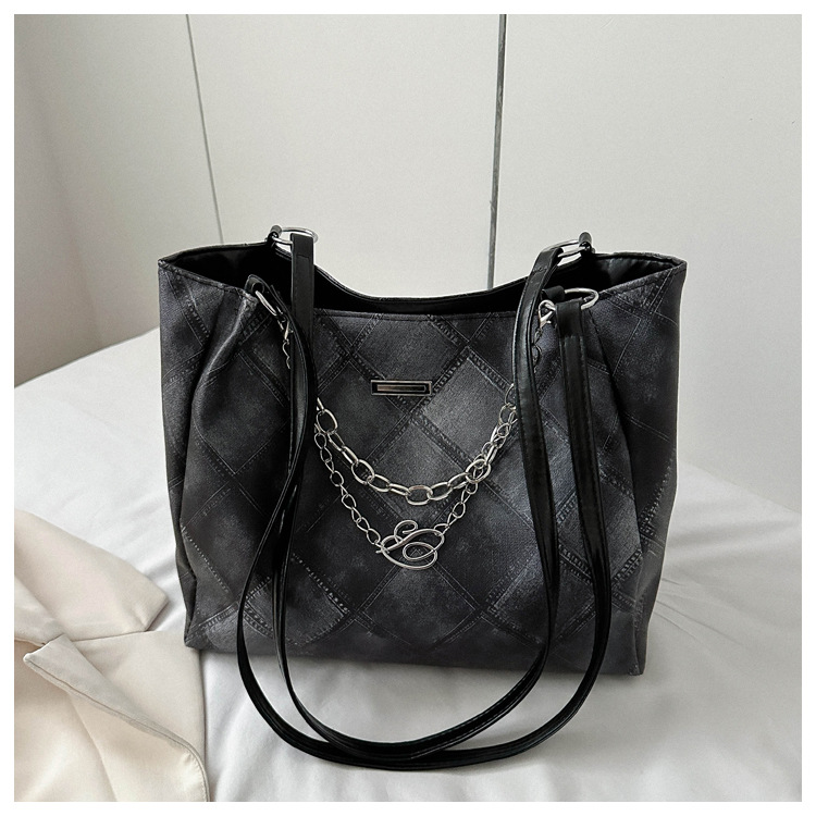 여성 한국식 대용량 겨드랑이 가방 2023 새로운 우아한 캐주얼 마름모 패션 한국식 숄더 토트 백