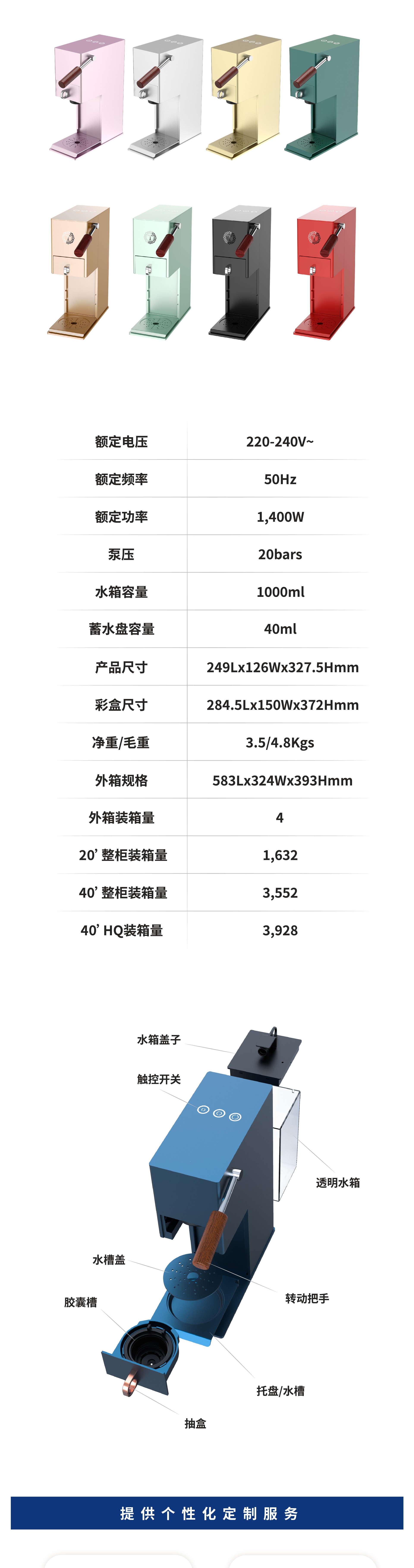 图兰多TC22泵压式可替换多胶囊咖啡机