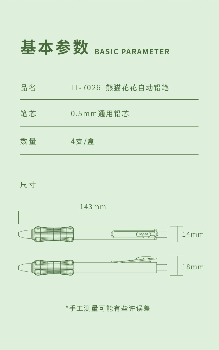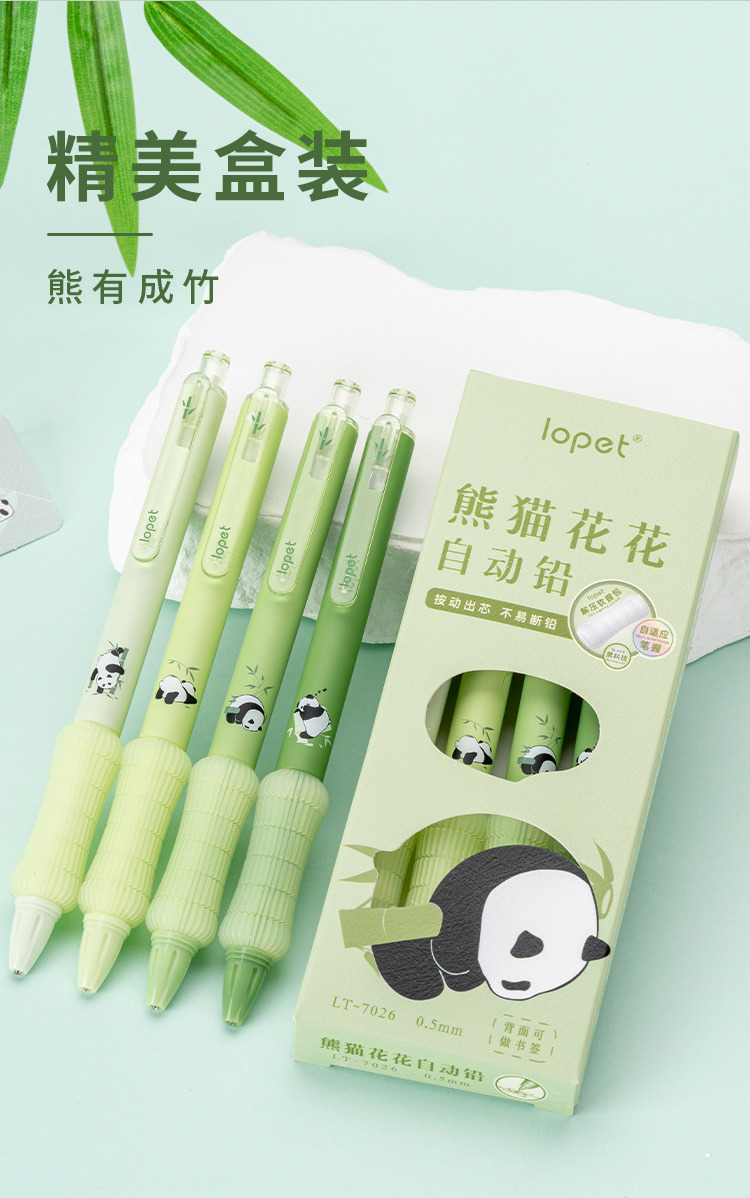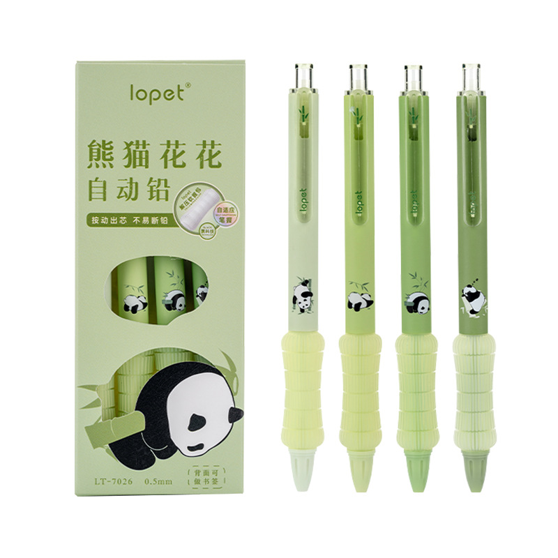 Lepai 7026 팬더 Huahua 자동 연필 귀여운 슈퍼 소프트 펜 지주 학생 0.5 유니버설 프레스 활동 연필스토어 가기