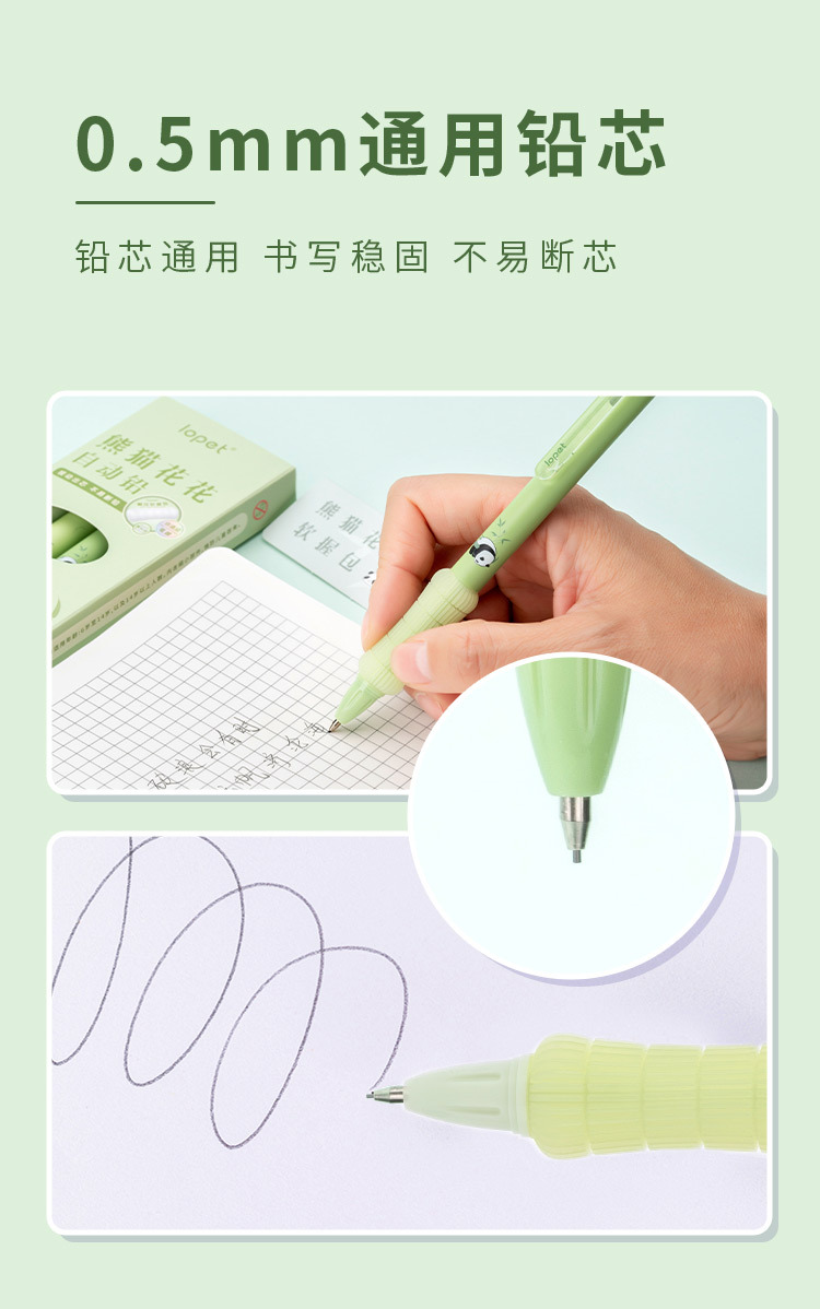 Lepai 7026 팬더 Huahua 자동 연필 귀여운 슈퍼 소프트 펜 지주 학생 0.5 유니버설 프레스 활동 연필
